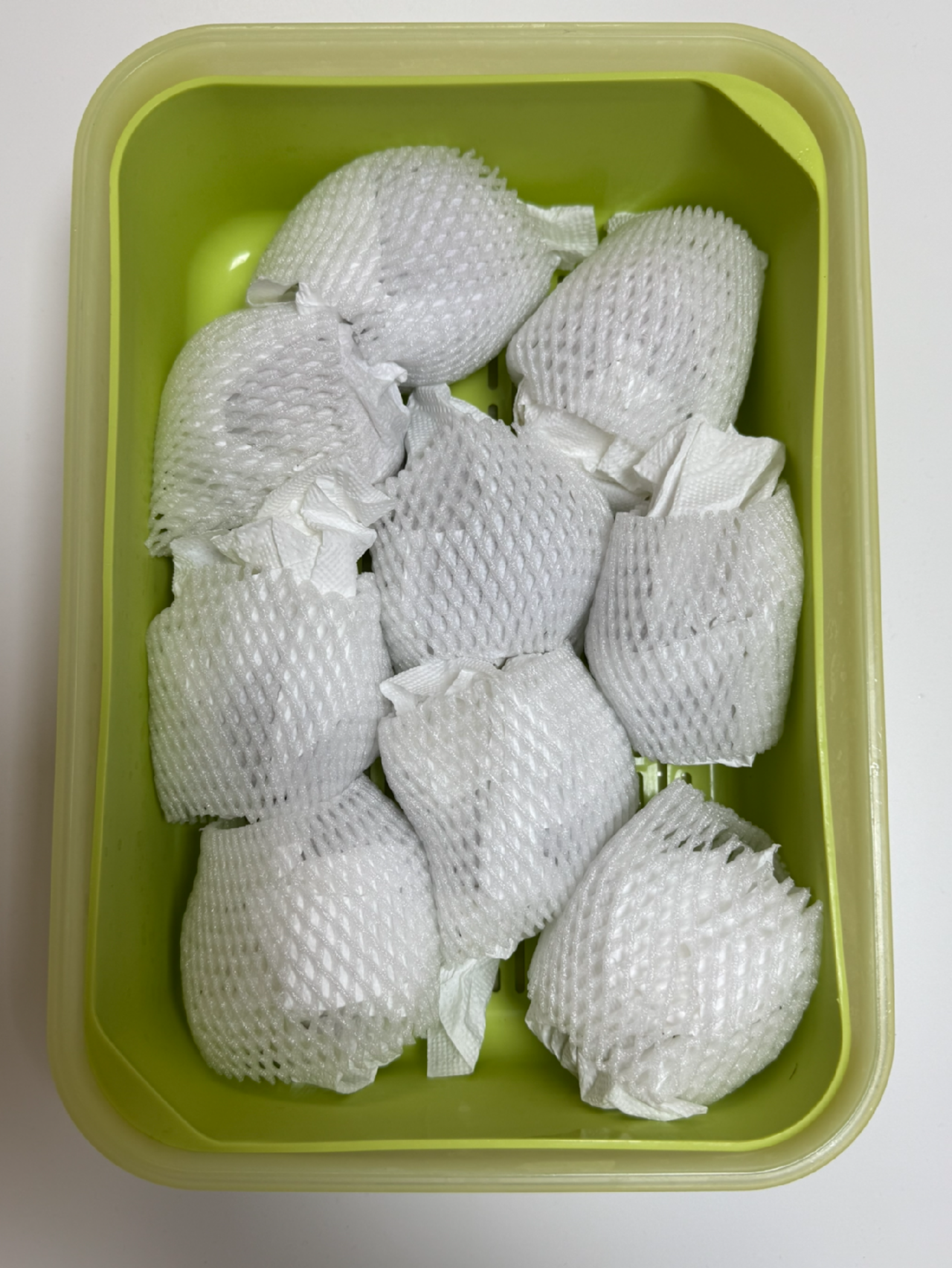 바닥면과 닿아서 무르는 것을 방지하고자 택배 왔을 때 받은 그물망 보호 캡으로 싸주었다.