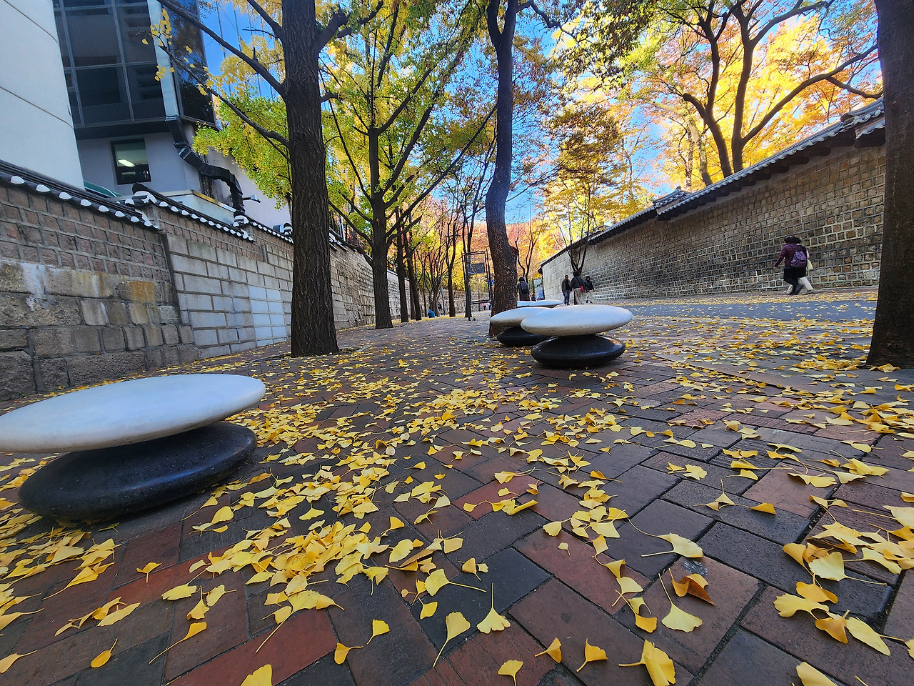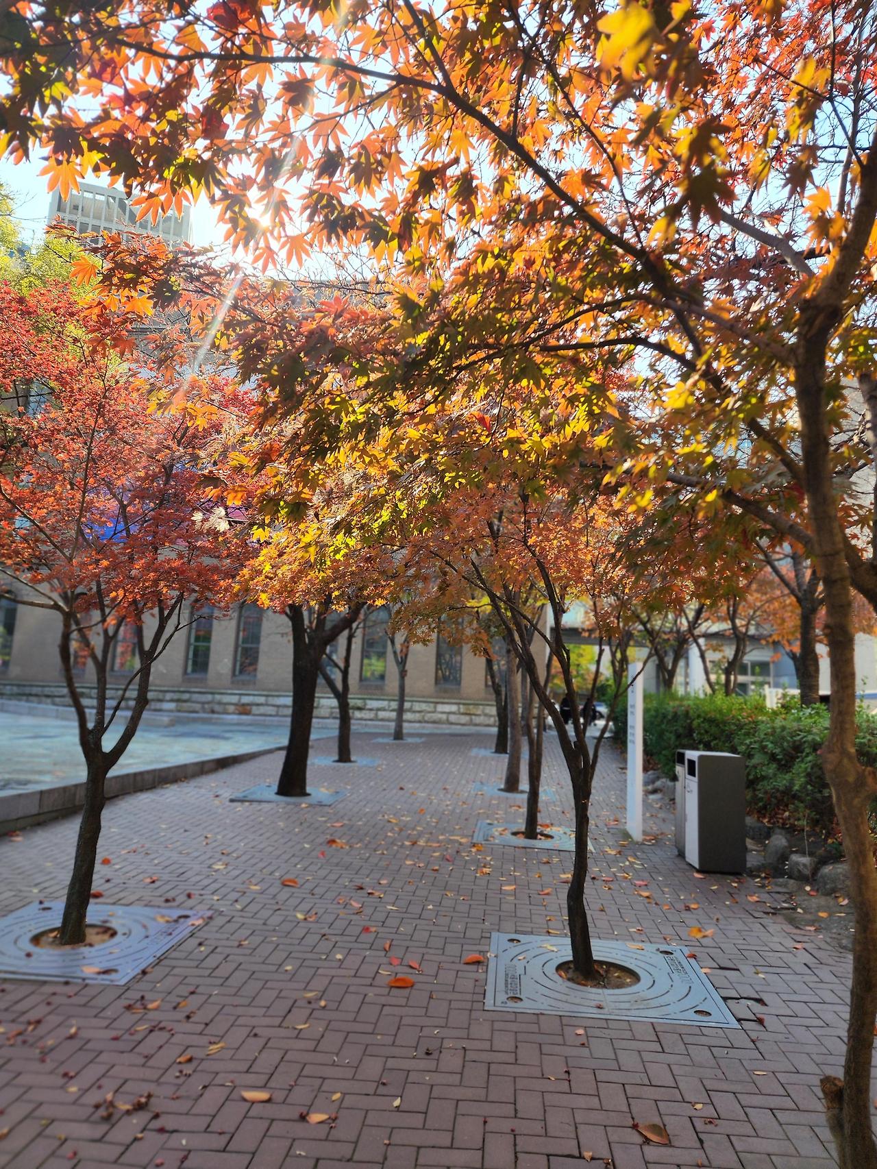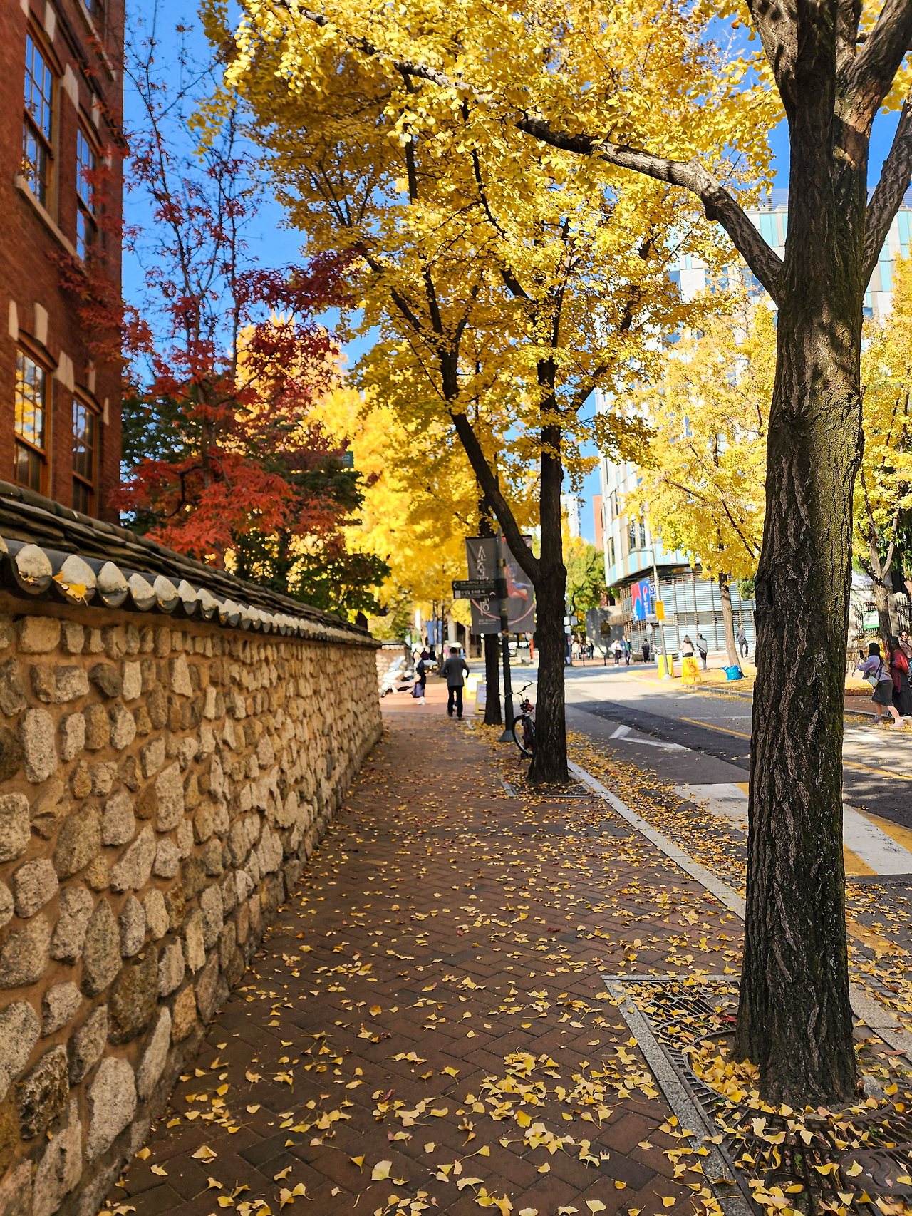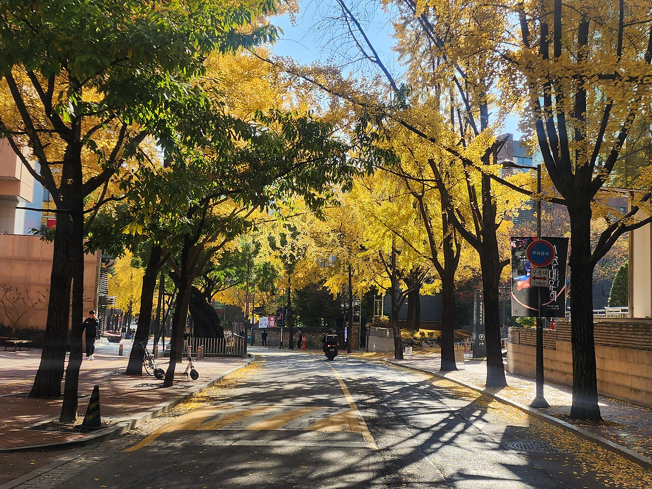 건강검진을 받기 위해 서소문 근처에 나갔다가 돌아오는 길 햇살은 눈부시고 공기는 달큰하고 길 건너편 이화여고 가는 길로 유난히 노랗게 물든 은행나무 몇 그루가 눈에 확 들어온다. 그 색이 너무 고와서 내친김에 그쪽까지 가보고 다시 정동길로 발길을 돌려 계획에 없던 산책을 했다. 보통 11월 초부터는 제법 색 고운 단풍을 볼 수 있었는데 올해는 나뭇잎들이 초록인 채로 말라가고 있고 단풍색도 그다지 곱지가 않아 아쉽던 중이었다. 아마도 지난여름 무더위를 견디느라 나무들도 온 힘을 다 써버려 마지막까지 버틸 힘이 부족했던 건 아니었을지 안쓰럽다.