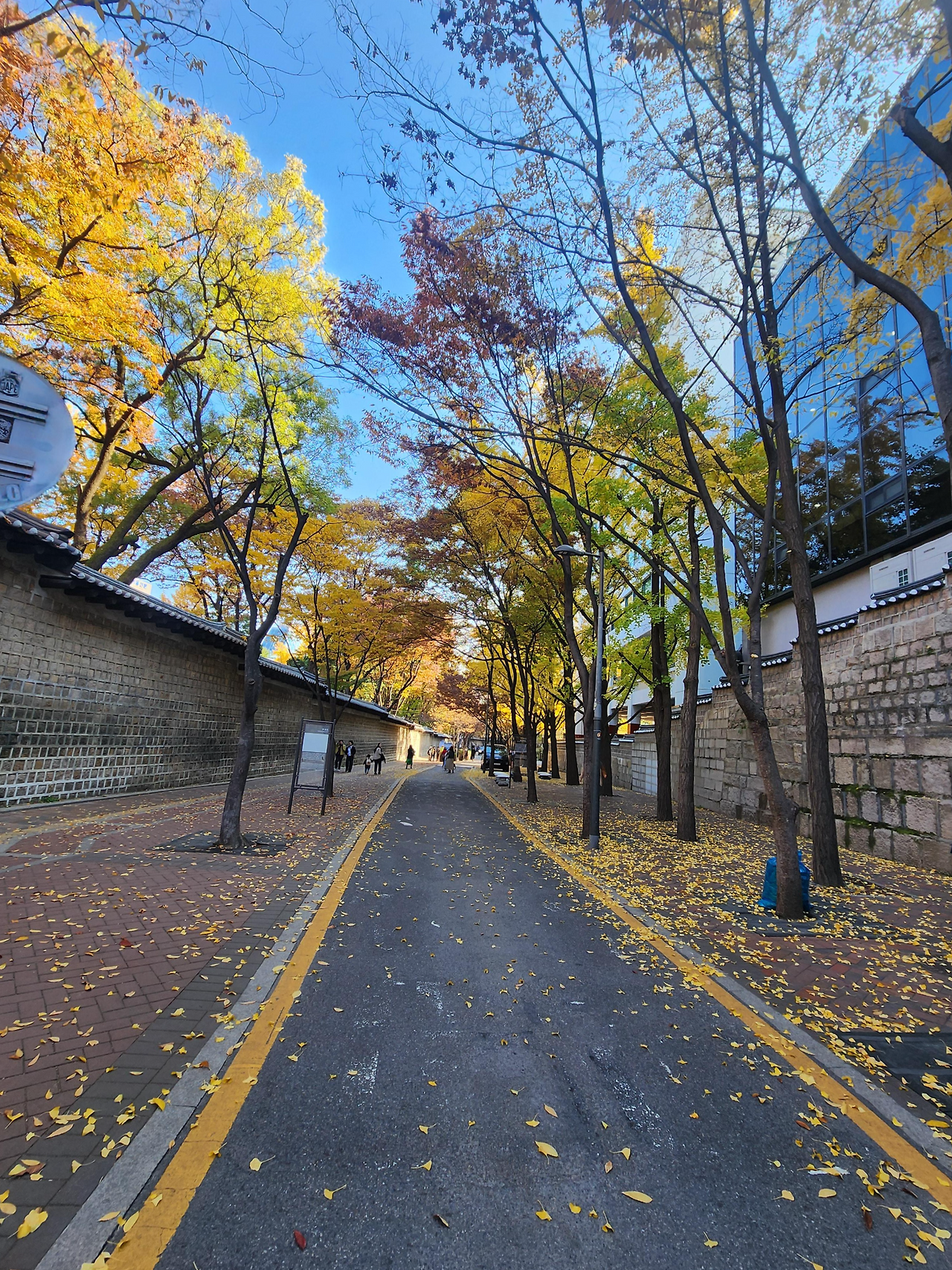 오전이라 인적도 드물고 밤새 떨어진 낙엽들도 이슬에 젖어 그대로 남아 있고 뜻하지 않은 횡재라 쾌재를 부르며 걷다 보니 어느새 덕수궁 돌담길이다.