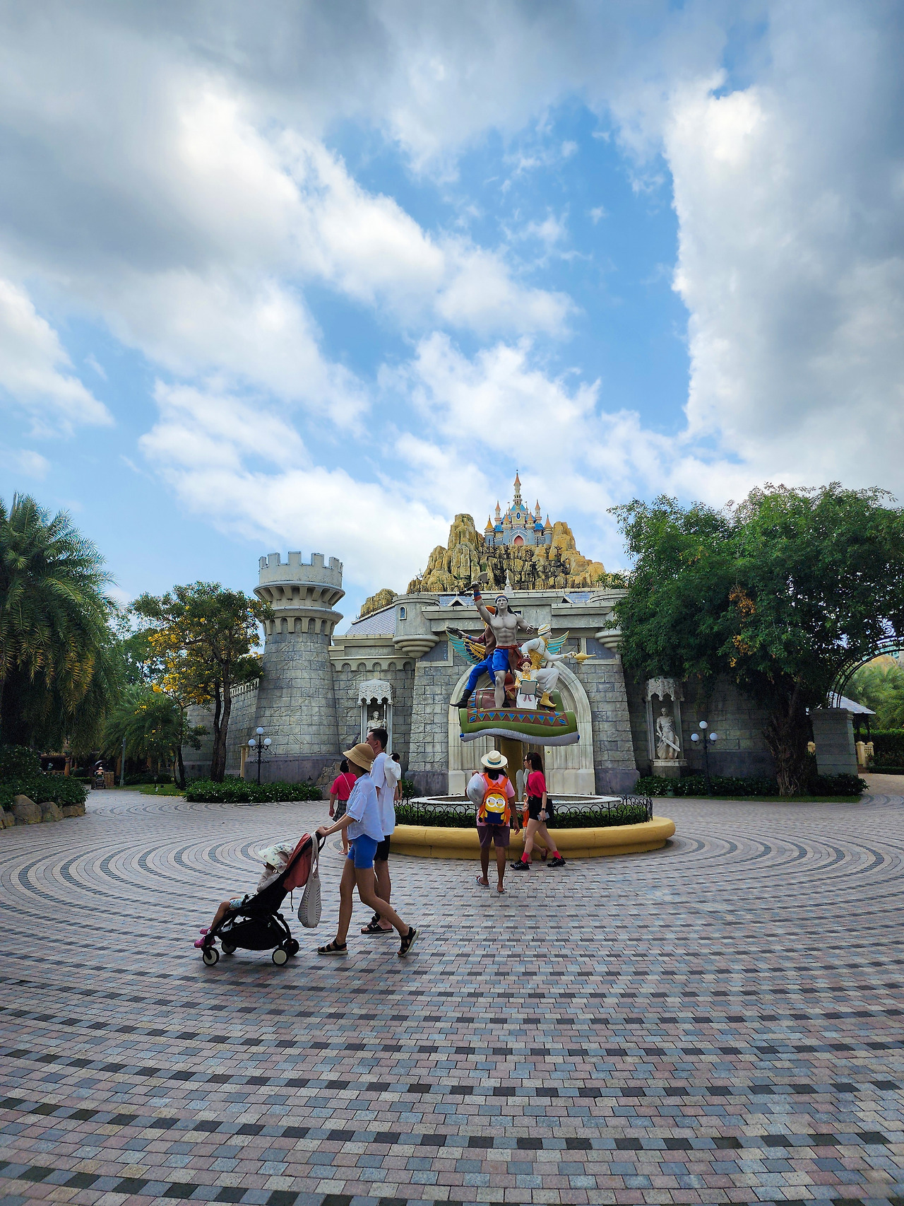 우리나라 테마파크가 그렇듯 입구부터 화려하고 예쁘다. 날씨가 화창하고 하늘빛이 좋으니 기분도 맑고 상쾌하다. 기분이 좋아서 그랬는지 나이 들어가며 관심밖이던 놀이기구에 자꾸 눈이 간다. 하늘로 날아오르고 싶다.
