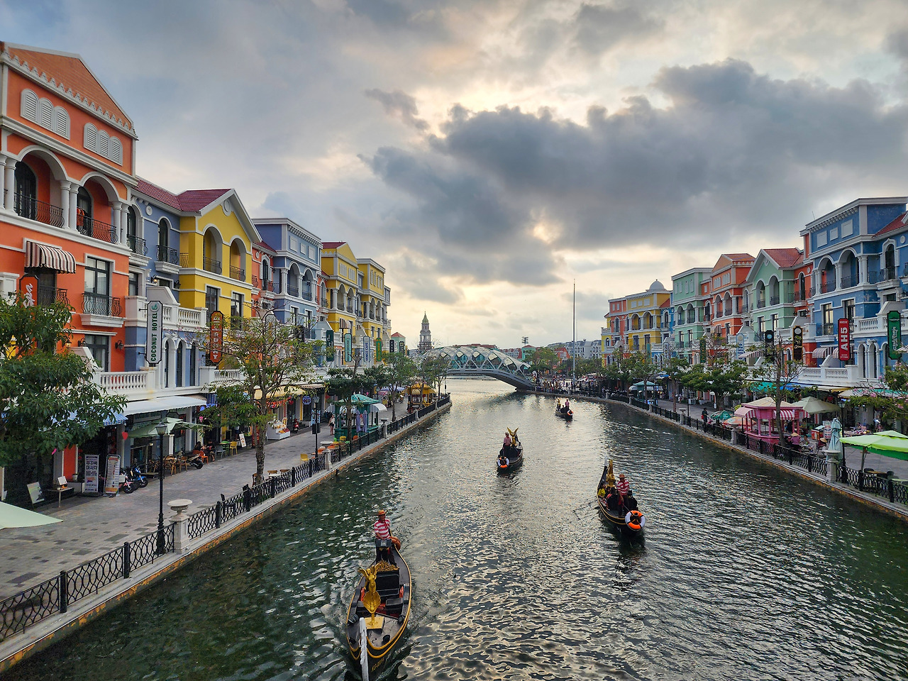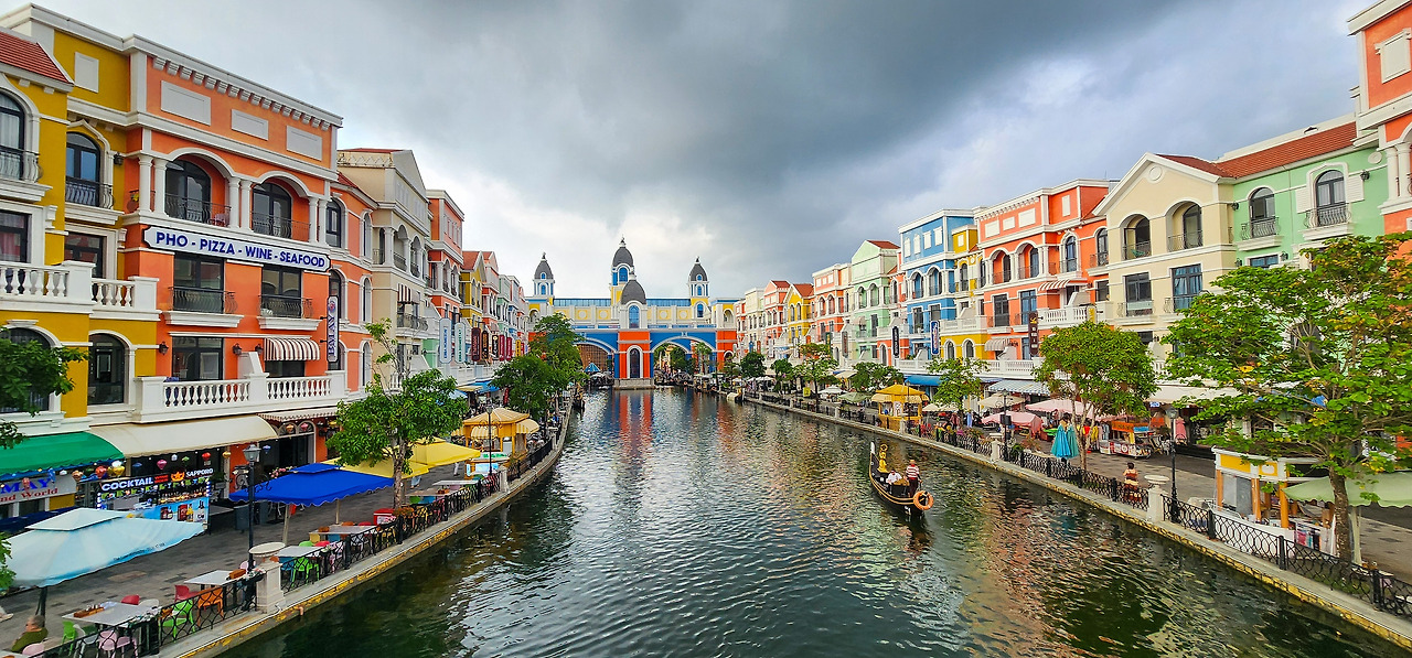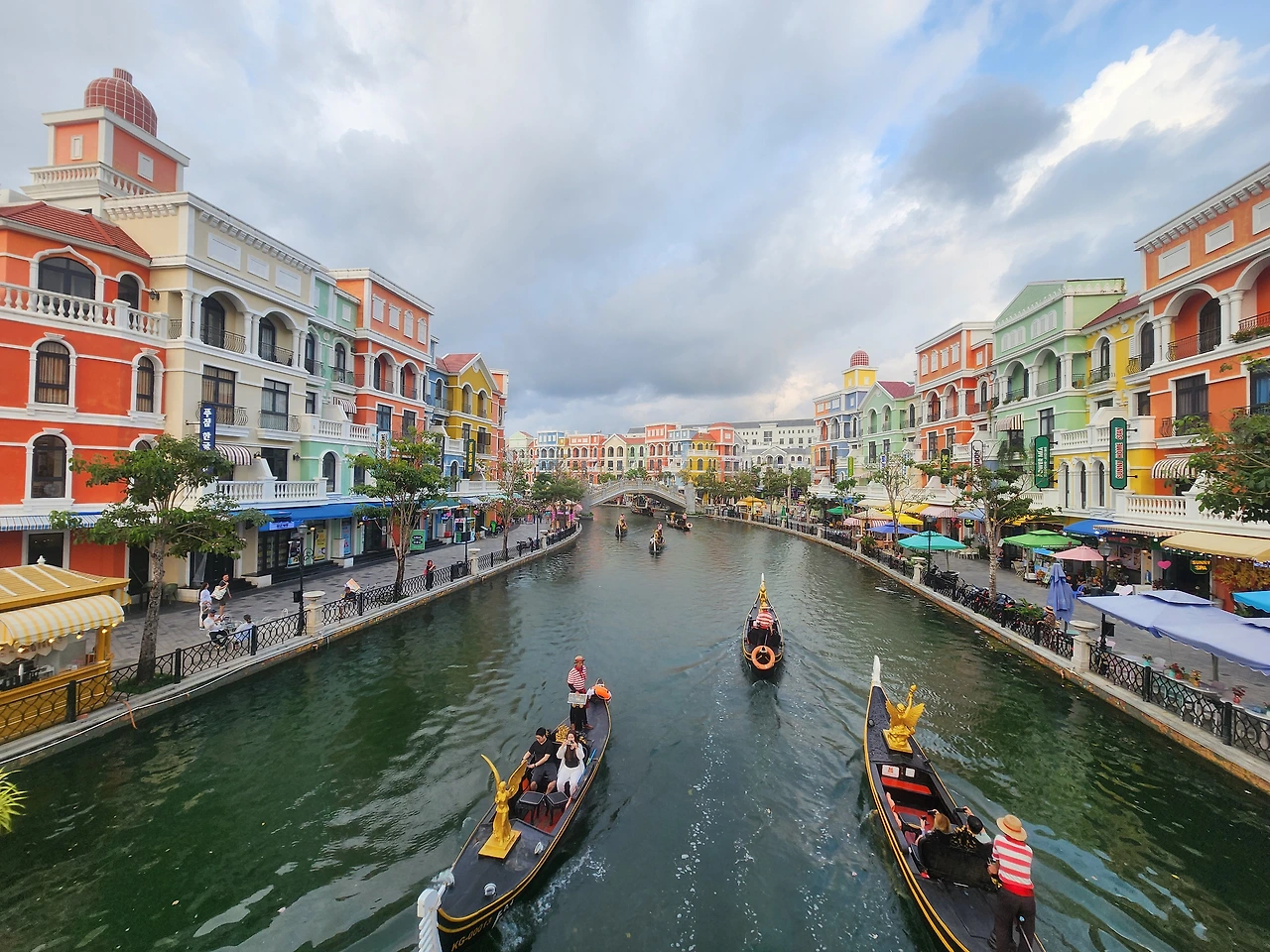 그랜드월드는 도심과 자연이 조화롭게 어우러진 곳으로 베트남의 전통적인 예술과 문화, 미식과 엔터를 동시에 충족할 수 있는 복합 문화공간으로 낮부터 밤까지 다양한 축제로 낭만적인 경험을 할 수 있어 잠들지 않는 도시라고 불린다. 이곳은 상하이, 베네치아, 베트남 야시장 등의 여행명소에서 영감을 얻어 유니크한 디자인으로 완성하였다고 하는데. 주변 건물들의 컬러가 운하와 잘 어우러져 화려하고 독특한 색감의 사진을 추억으로 남길 수 있는 매력적인 곳이다.