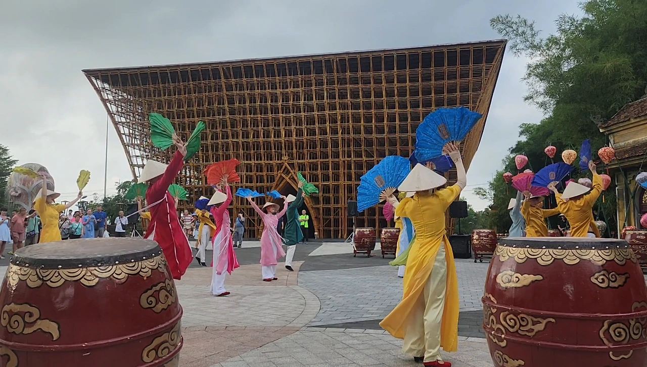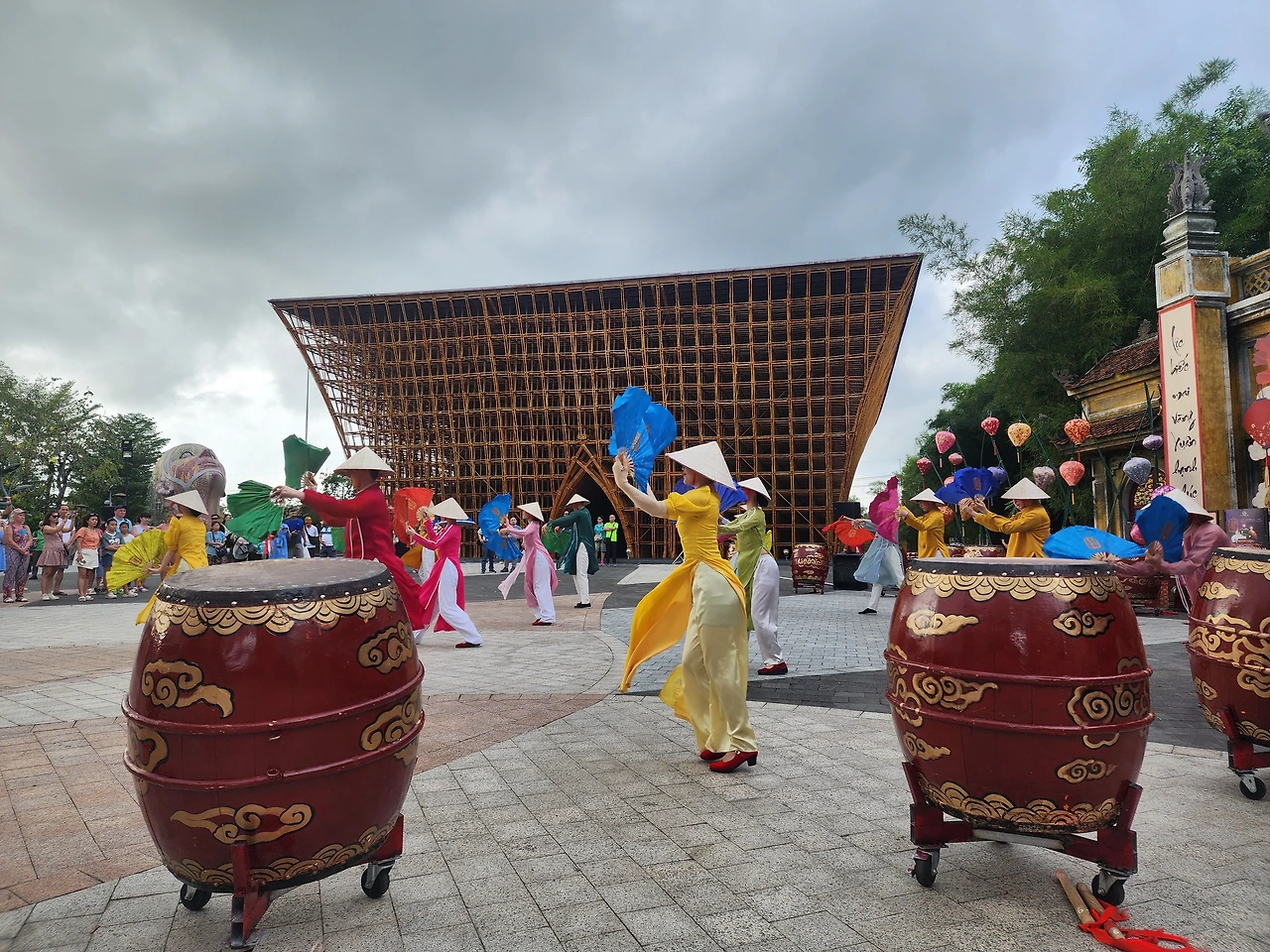 베트남을 상징하는 3가지 대나무(민족정신) 연꽃(국화) 청북(선사 시대 유물)을 모티브로 지어졌다고 한다. 높이 약 15m 면적 700m2 규모에 3만 2천 개의 대나무를 하나하나 연결해서 만든 대형 조형물이다. 외부에서 보는 규모도 대단하고 내부로 들어가면 연꽃 모양의 구조가 아름답다. 그랜드 월드 광장으로 도착하니 베트남 전통춤공연을 하고 있다. 가는 곳마다 뭔가 딱 들어맞는 느낌이랄까? 덤으로 얻는 행운 하나에도 기쁨을 감출 수가 없다.