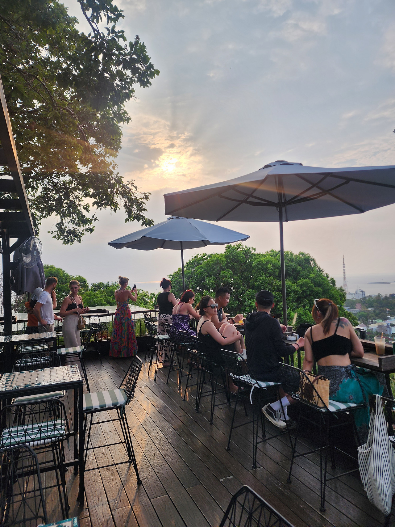 마침 석양이 시작되는 시간 노을빛에 물든 사람들의 모습과 산 아래 마을 풍경이 아름답다. 멋진 풍경과 차 한잔의 여유로 여행 마무리를 하는 일은 좋은 기억 하나를 추가하는 것과 같다.