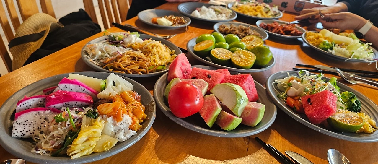 어제의 호핑투어로 체력이 소모되었는지 다들 놀이 기구나 워터파크 이용을 하지 않고 혼똔섬 구석 구석을 한바퀴 돌았다. 뷔페 현지식으로 점심을 먹었는데 많은 종류의 음식을 뒤로하고 다들 음료와 과일 위주로 담아다 놓았다. 더운 날씨 때문이었는지 식사 이후 속이 좋지 않아 몇몇이 고생을 하기도 했다.