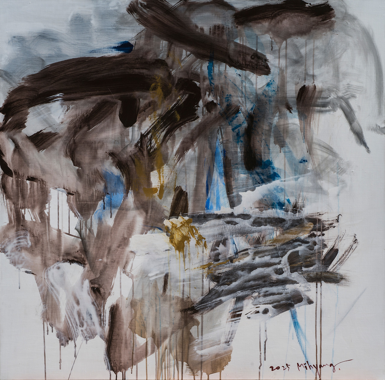 이 작업일기는 이 글을 쓰기 훨씬 전에 최초로 추상으로 가는 지점 어디에선가 했던 생각을 쓴 것이다. 20호 캔버스에 그림을 그리고 있다가 갑자기 '본다는 게 뭐지? 우리가 보는 건 사물의 본질인가?' 하는 생각이 들기 시작했다. 눈앞에 차려놓은 정물대의 화병, 꽃들, 테이블보, 광선 이런 건 사람이 그것도 의도적으로 놓은 것들인데 생명을 가진 모든 시선들이 이렇게 보지는 않지 않나? 독수리가 빠른 속도로 내려오면 전혀 다른 것이 보일 텐데? 그때 수직적 시계가 열린 것 같았다. 내 눈앞에 존재하는 것들을 바라보는 내 시각을 던지는 계기가 왔다. 아마 그림 그리고 5년 쯤 되었을 때 같은데 그것이 추상으로 넘어가는 데는 또 오년 쯤 더 지나 대학원에 진학하면서부터였다.