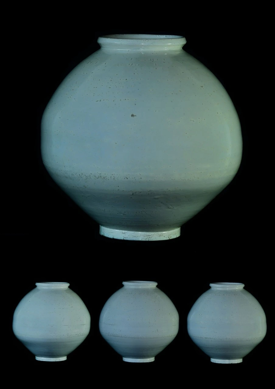 죽절굽의 백자 찻사발은 많이 있습니다. 현재까지 알려진 죽절입술을 가진 달항아리는 18회 연재때 소개한《죽절입술 귤피문 둥근달항아리》와 더부러 딱 2점 뿐입니다. 이 달항아리는 그 드문 사례 중 하나라는 점에서 대체불가한 마력을 가집니다.