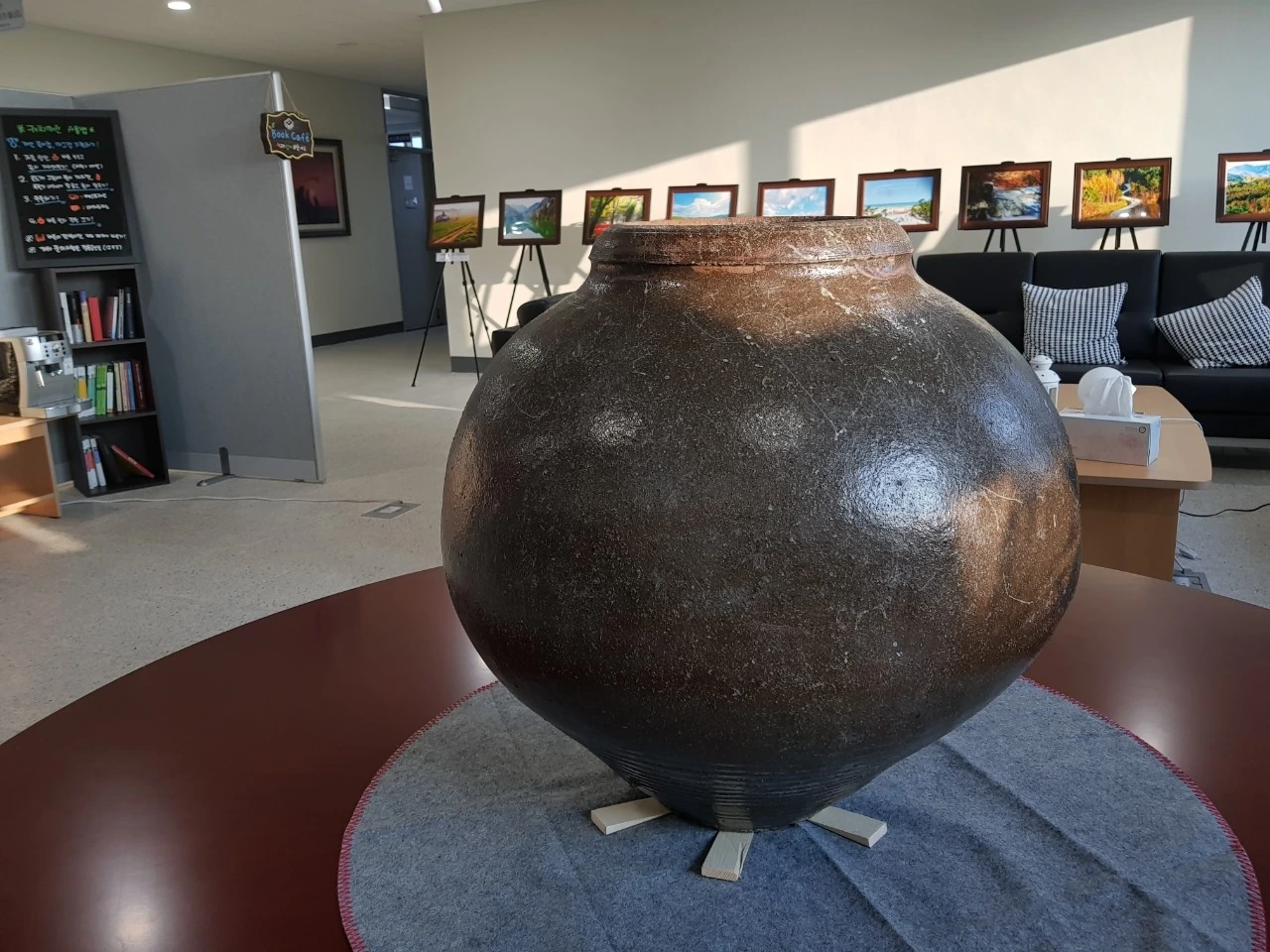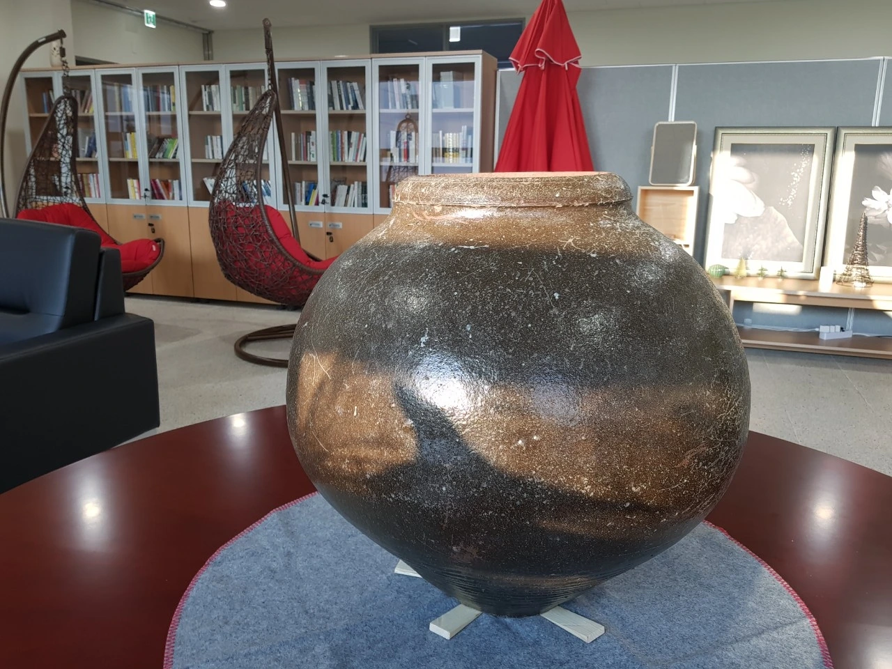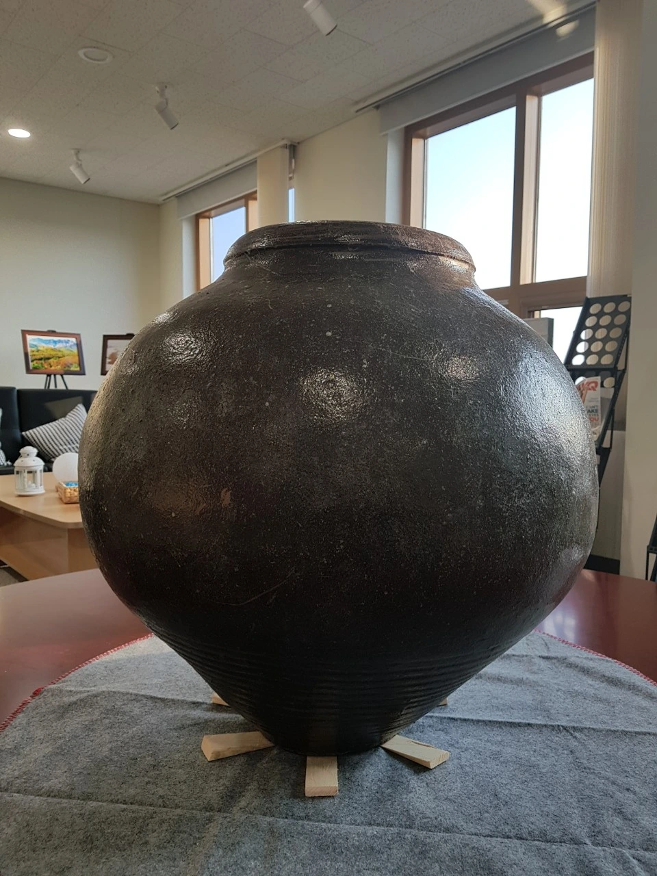 오늘 소개할 항아리는 달항아리가 아닙니다. 독항아리이기 때문입니다. 지난 연재에서 수차례 말했습니다. 달항아리는 높이(키)가 40cm 이상의 백자대호 원호만 달항아리라 부릅니다. 이 항아리는 넓이와 높이는 80cm에 육박하고 생긴 모양도 달처럼 둥그렇게 생겼습니다. 백자가 아니라서 달항아리 이름은 못붙이고, 장독달 항아리라 지었습니다.