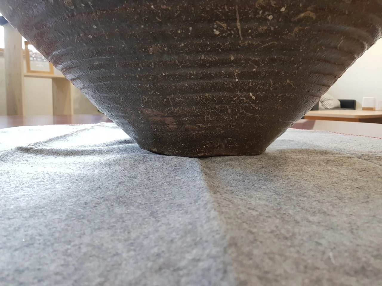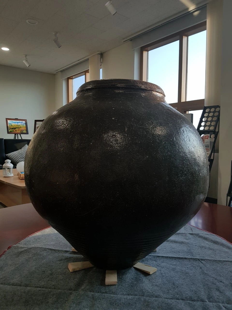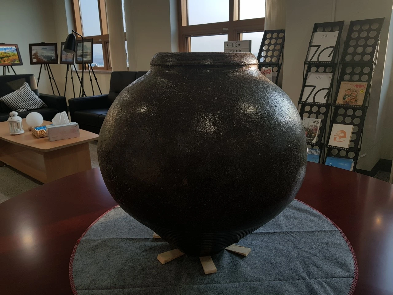 오늘 소개할 항아리는 달항아리가 아닙니다. 독항아리이기 때문입니다. 지난 연재에서 수차례 말했습니다. 달항아리는 높이(키)가 40cm 이상의 백자대호 원호만 달항아리라 부릅니다. 이 항아리는 넓이와 높이는 80cm에 육박하고 생긴 모양도 달처럼 둥그렇게 생겼습니다. 백자가 아니라서 달항아리 이름은 못붙이고, 장독달 항아리라 지었습니다.