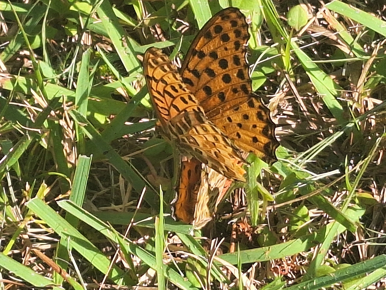 잔디밭에 앉은