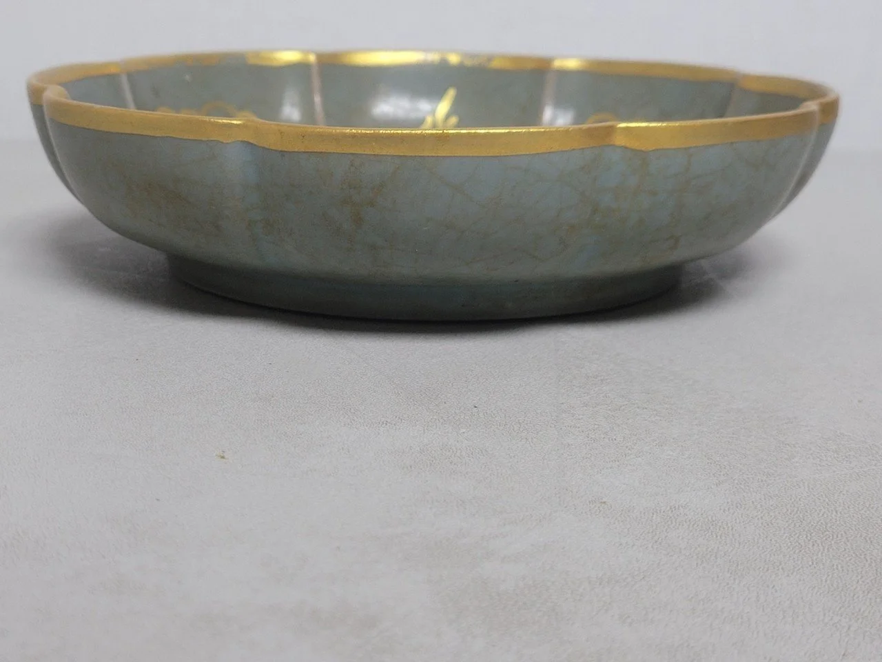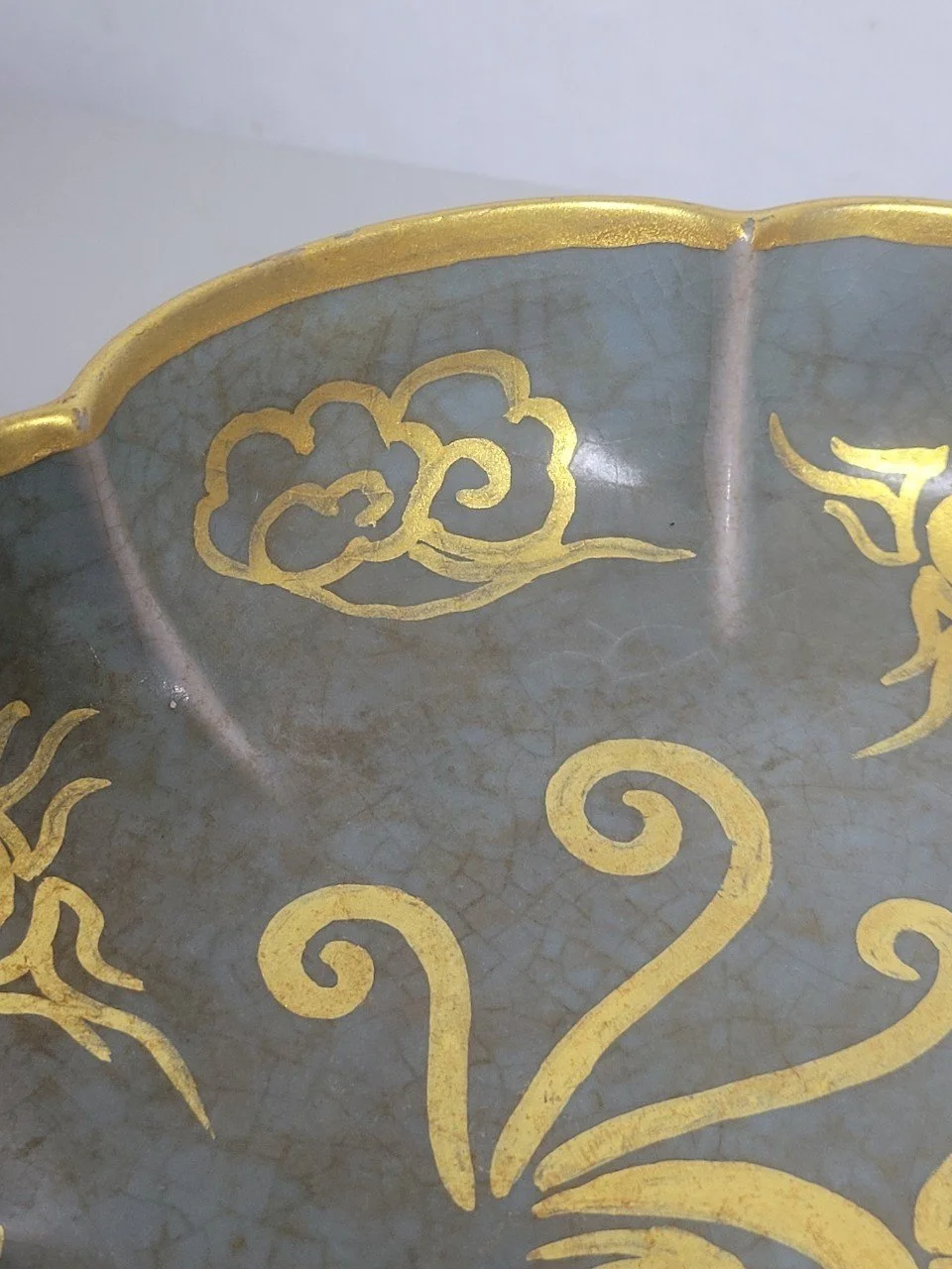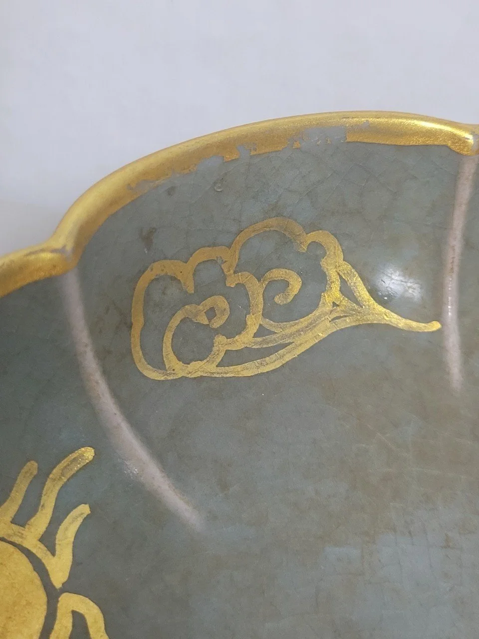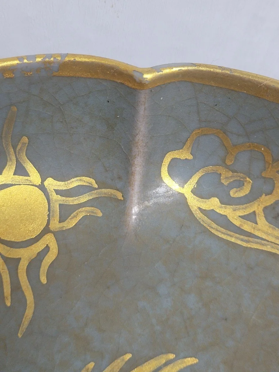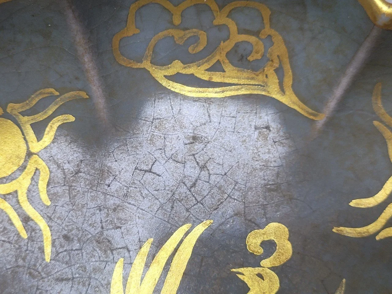 나는 접시를 천천히 돌려본다. 봉황의 날개를 따라 흐르는 금선은 또렷하지만, 각도에 따라 은은히 흩어진다. 가장자리는 비교적 선명하되, 굴곡진 부분에서는 유약의 빙렬이 조용히 드러난다. 금은 완전히 융합된 층이 아니라, 유색 위에 놓인 얇은 막처럼 느껴진다.