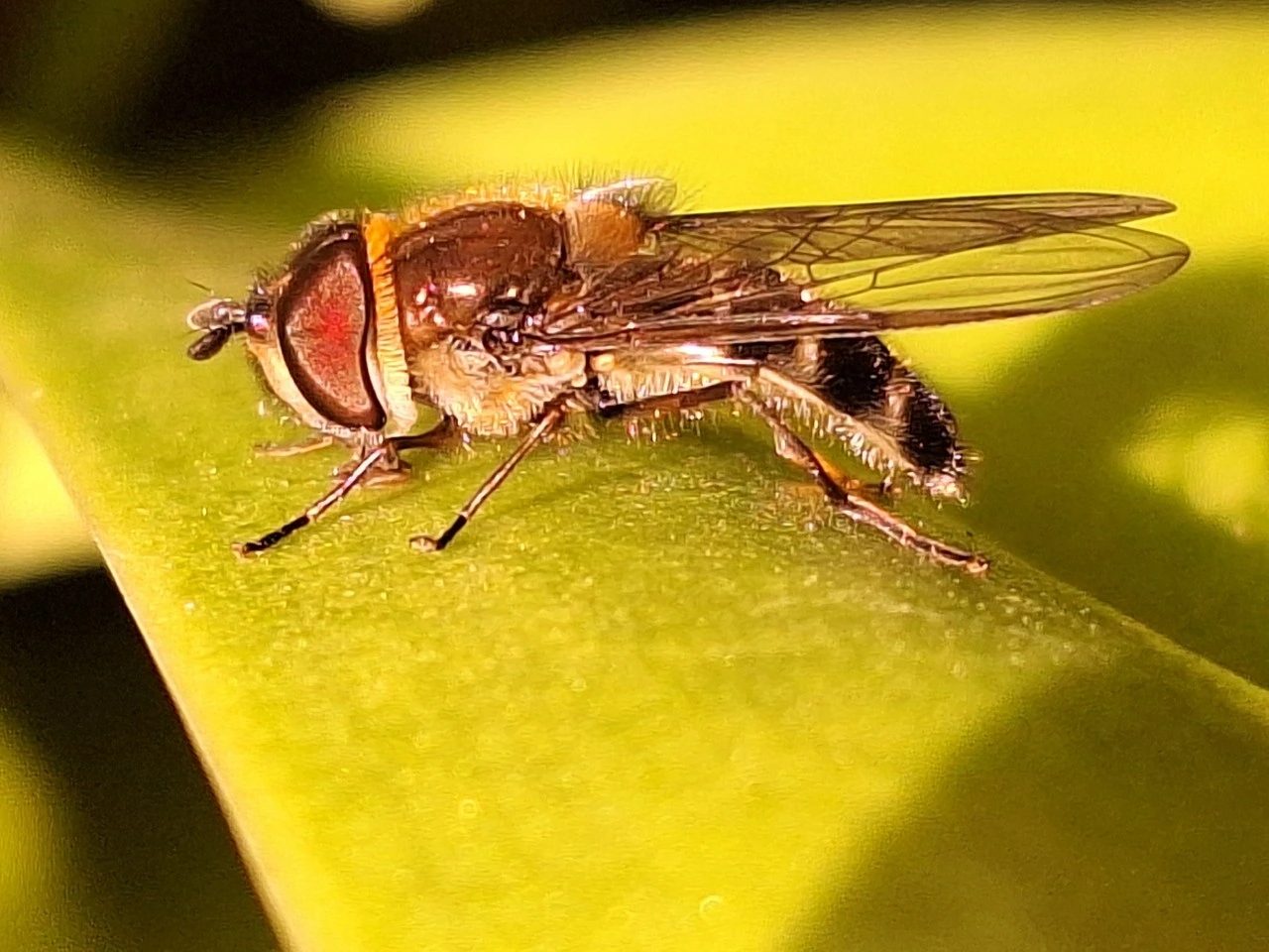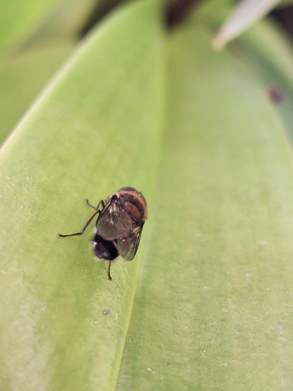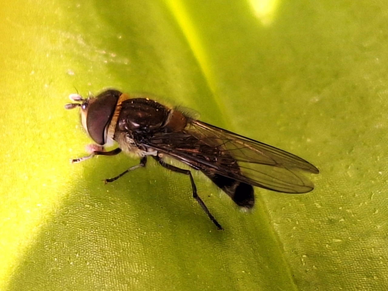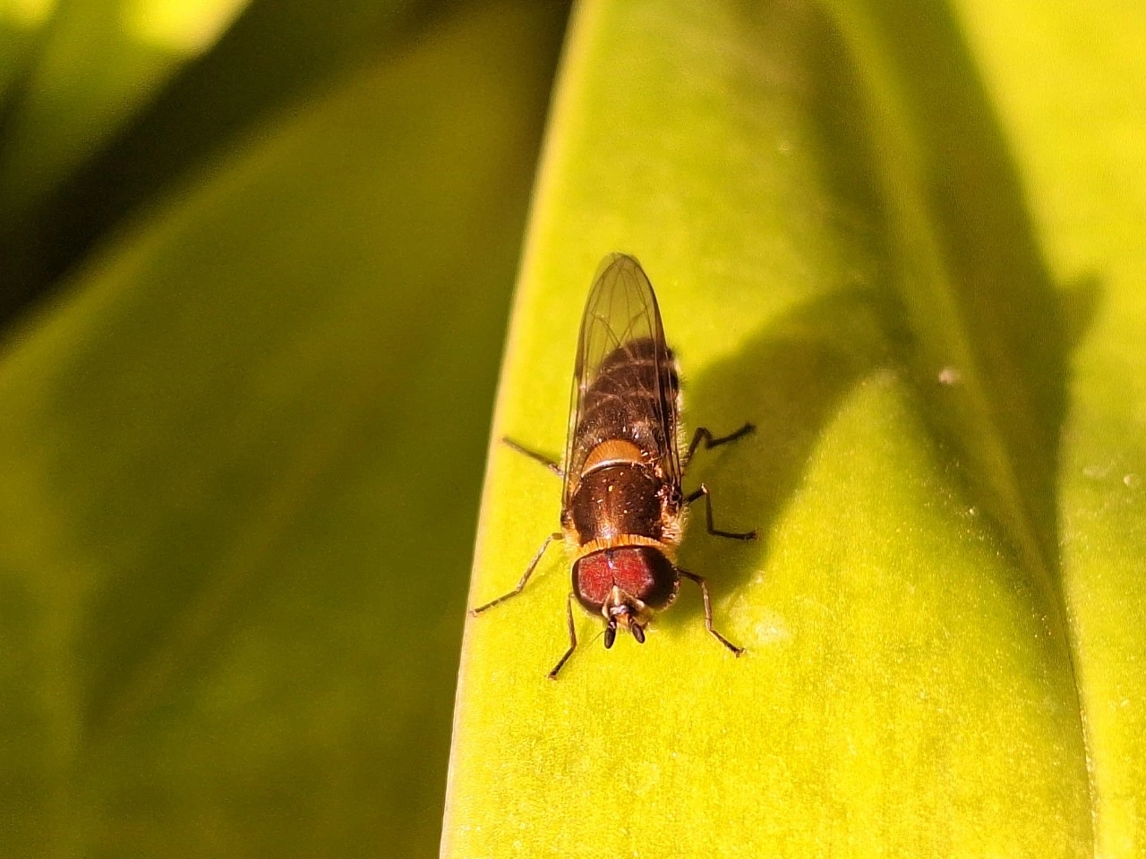 초록의 잎사귀 위, 금빛 햇살을 등에 업은 작은 생명이 앉아 있다. 설날 아침, 아직 겨울의 잔기가 남은 공기 속을 비집고 나온 꽃파리다. 그는 불청객일까, 아니면 귀객(貴客)일까.