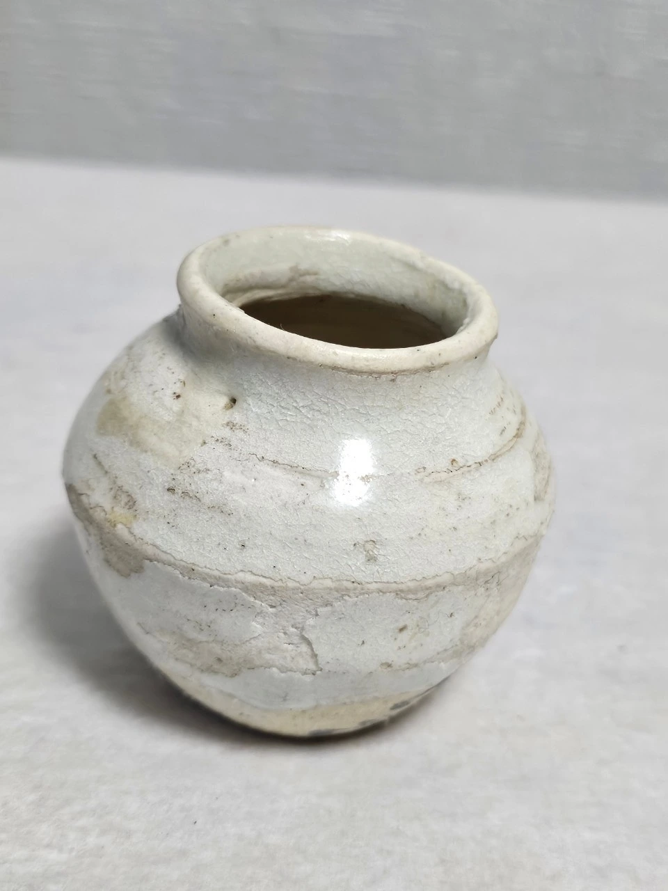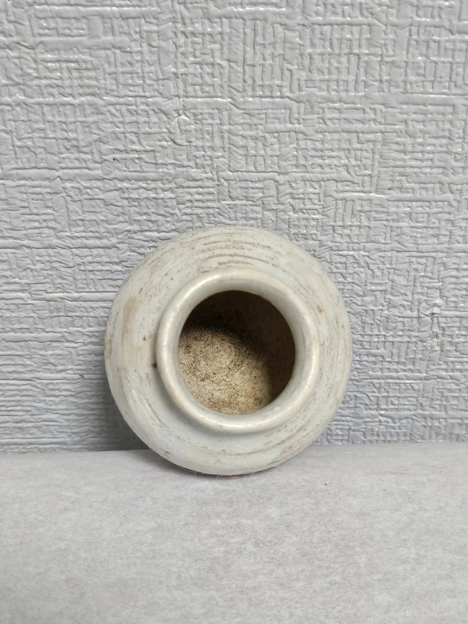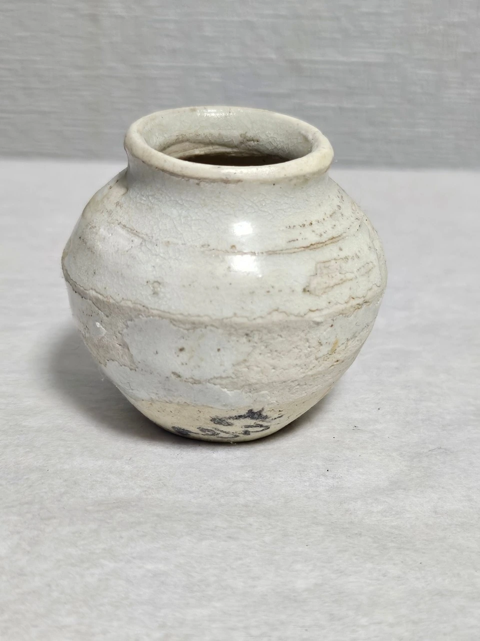 연작인 소호 역시 마찬가지다. 기물을 백토 물에 담갔다 빼는 덤벙 기법을 빌려와 표면을 매끄럽고 일정하게 다듬었는데, 이는 바닥에 쓰인 玉食(옥식)이라는 명문을 받들기 위한 정결한 바탕의 조성이다. 조선 시대 문헌에서 옥식은 고귀한 제례나 격식 있는 음식을 의미하며, 이 묵서가 400여 년의 세월 동안 백토 분장층 깊숙이 스며든 흔적은 현대의 기술로는 흉내 낼 수 없는 시간의 물리적 증거이자 이 유물들이 17세기 조선백자의 정수임을 확증해 준다.