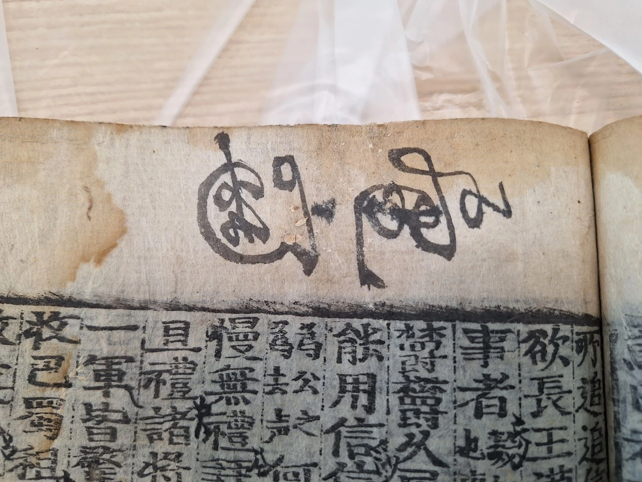 그러나 표지 안쪽 면에는 다른 장면이 숨어 있다. 본문과는 별개로 표지 내면에 직접 찍힌 5행의 인쇄부 중, 중앙의 3행이 1행 22자로 조판되어 있다. 이 22자 행은 본문의 경자자와 감각이 다르다. 획은 다소 두텁고, 자간의 호흡은 넓으며, 판면의 긴장은 완화되어 있다. 단순히 글자 수가 늘어난 것이 아니다. 설계의 방향이 미묘하게 이동한 흔적이다.