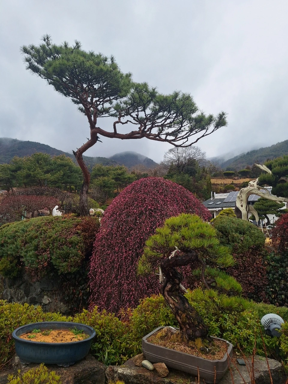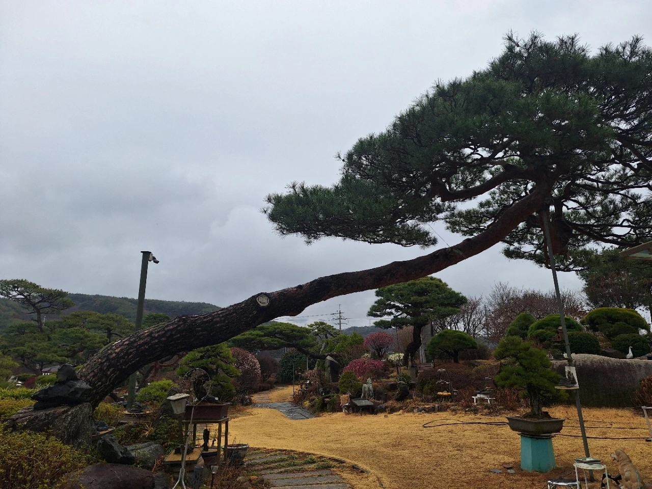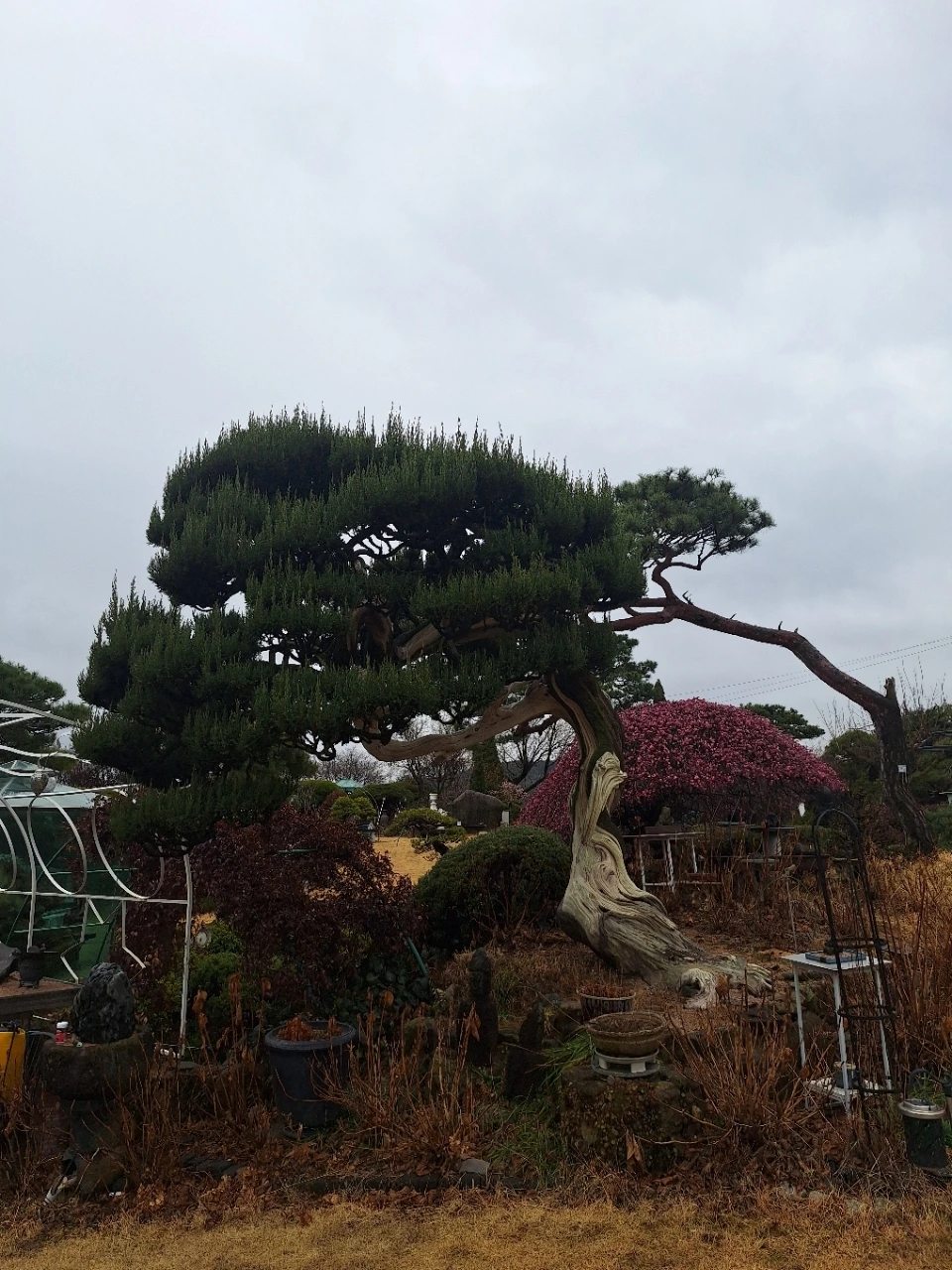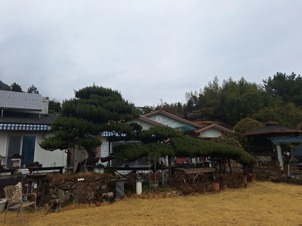뒤편의 소나무는 오래 버텨온 몸이다.