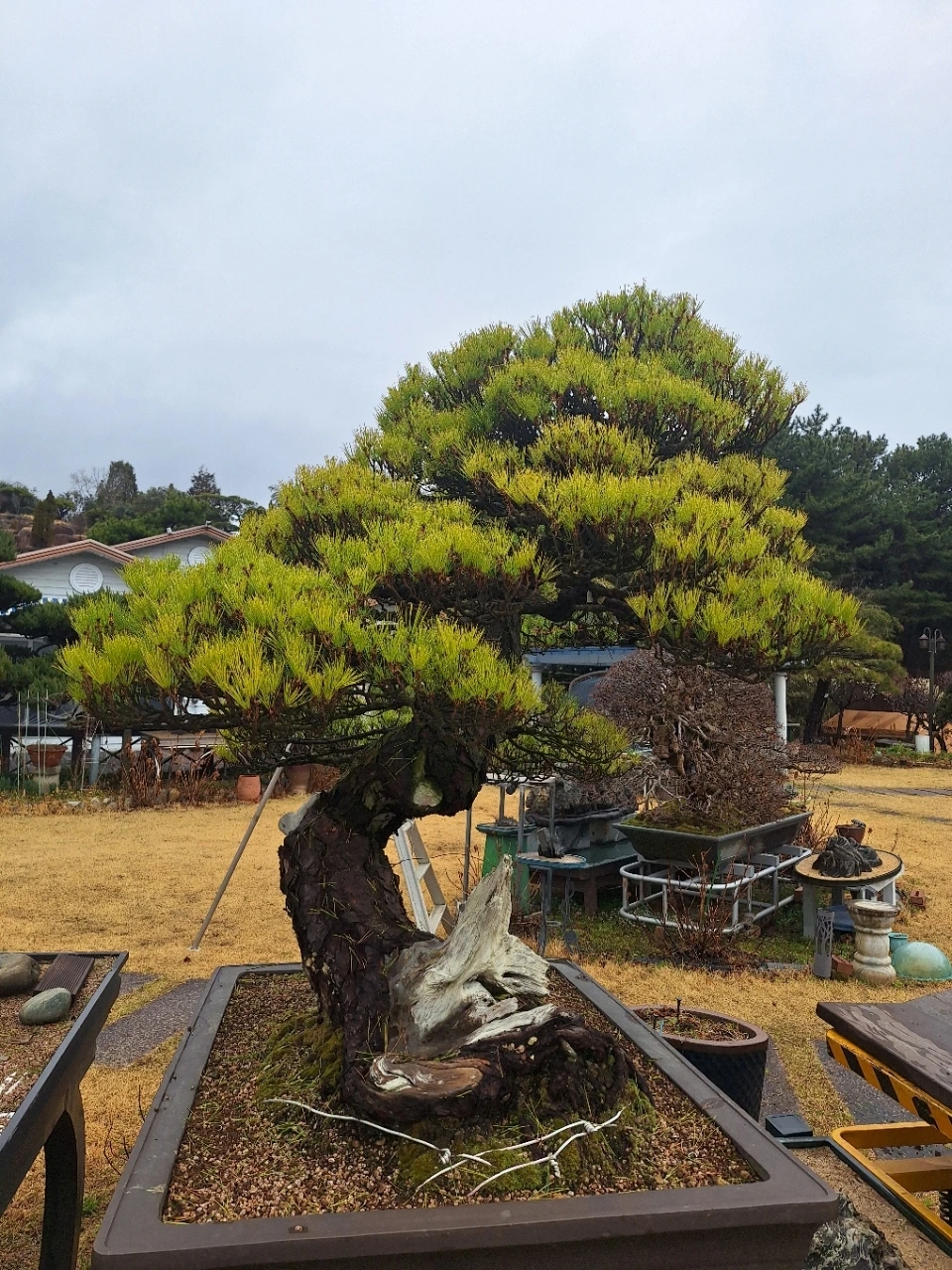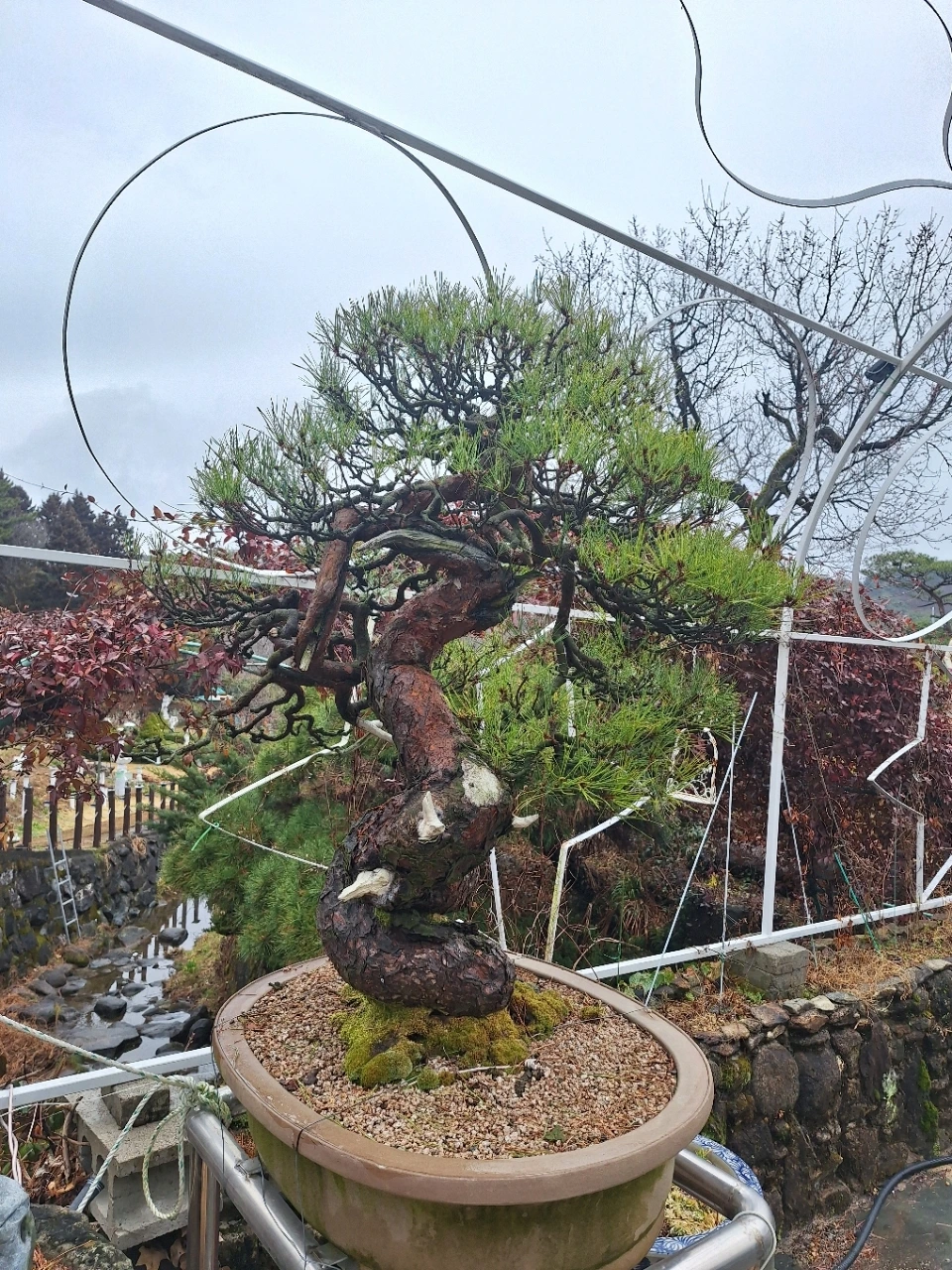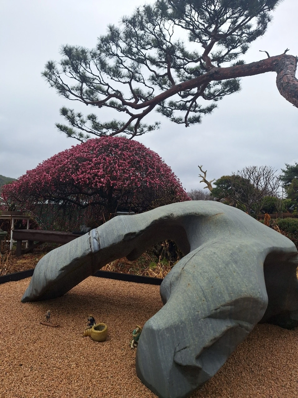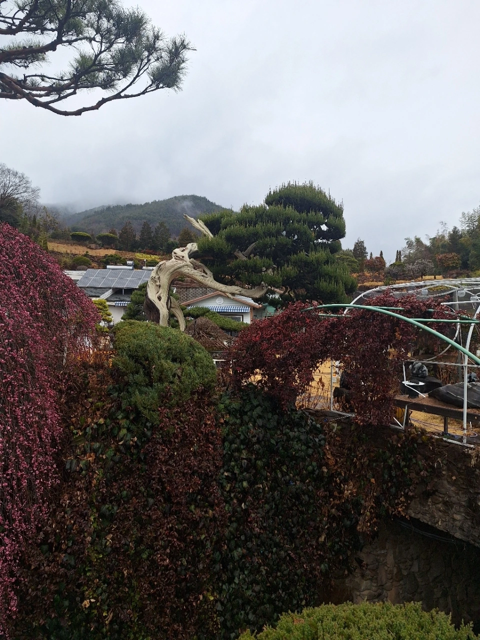 뒤편의 소나무는 오래 버텨온 몸이다.