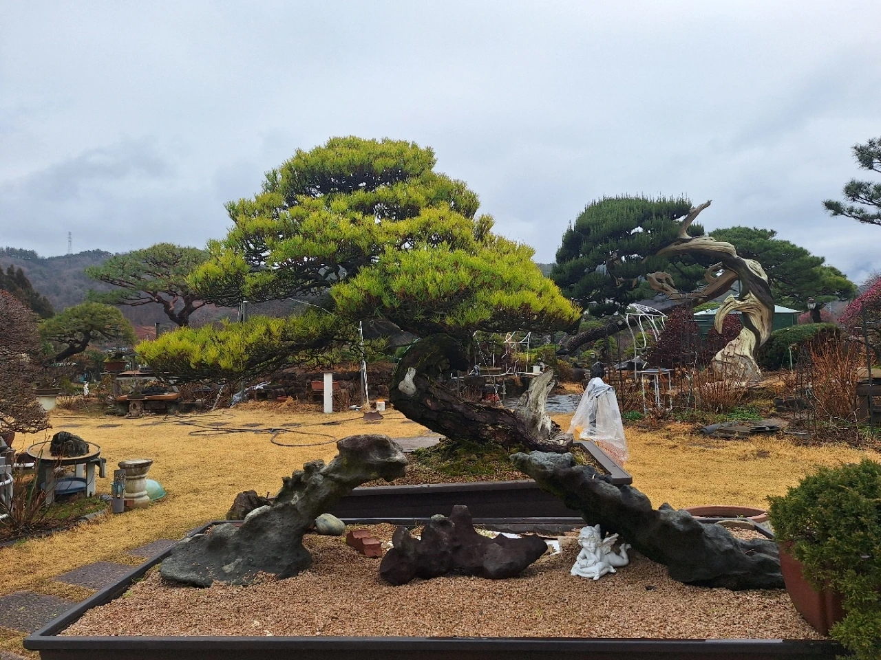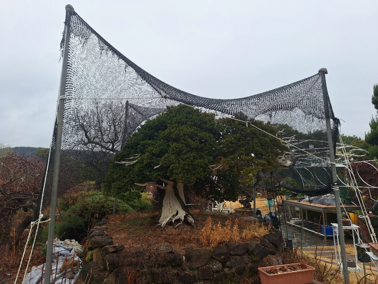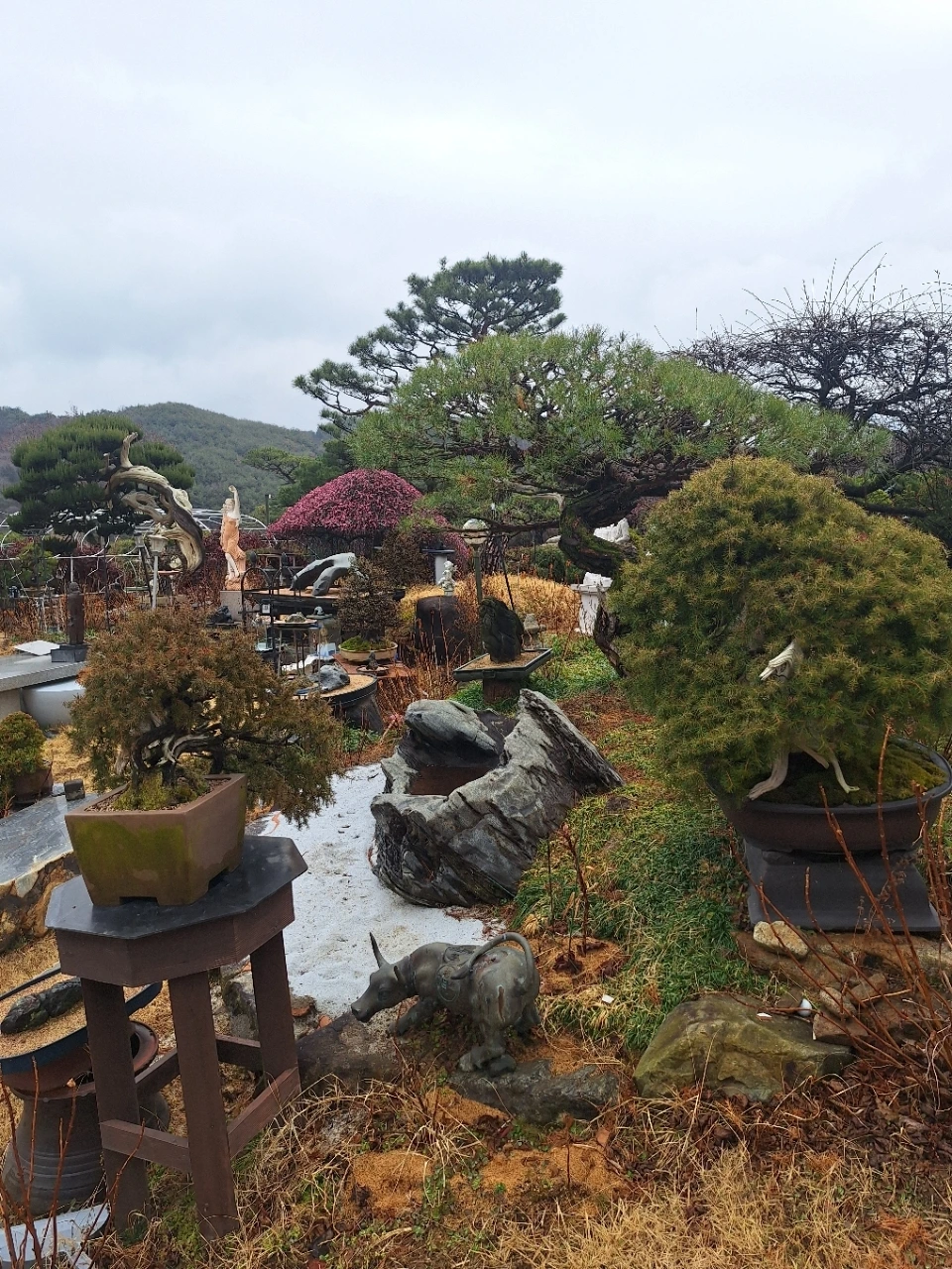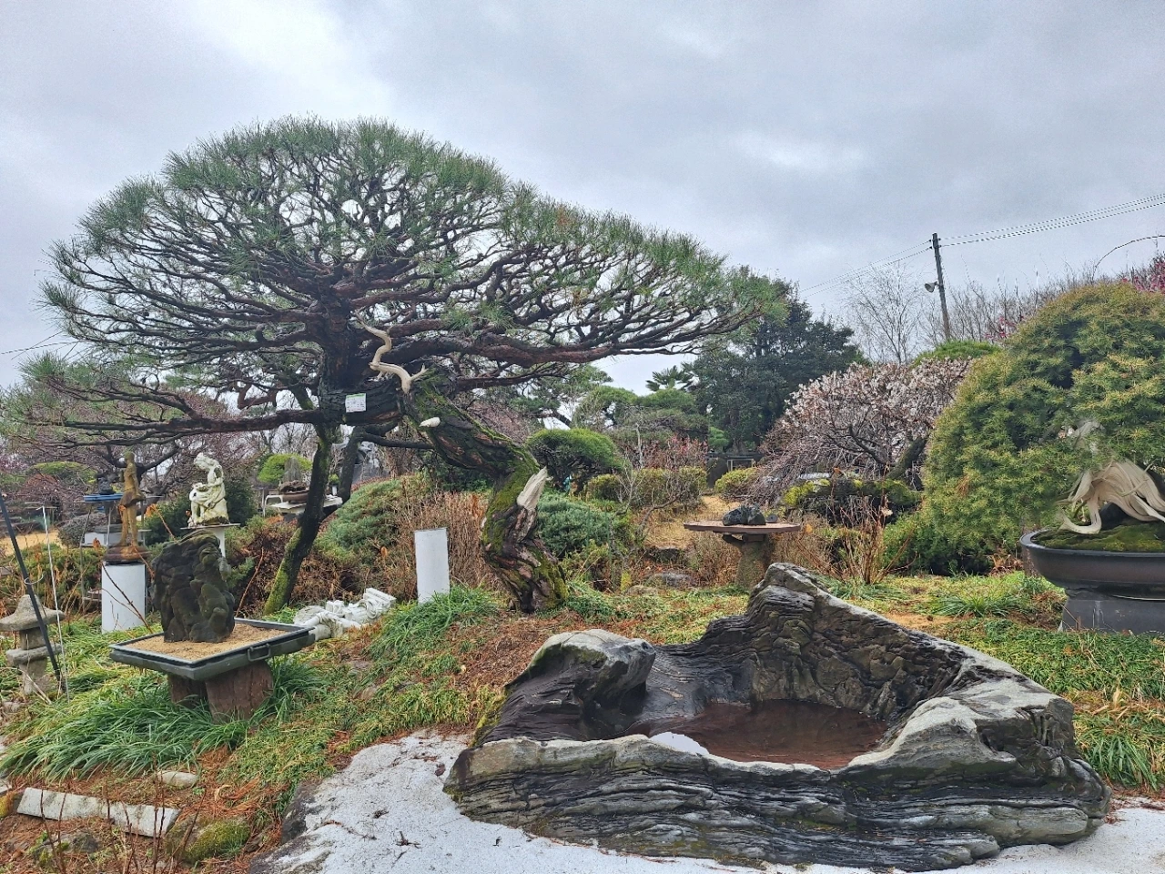 뒤편의 소나무는 오래 버텨온 몸이다.