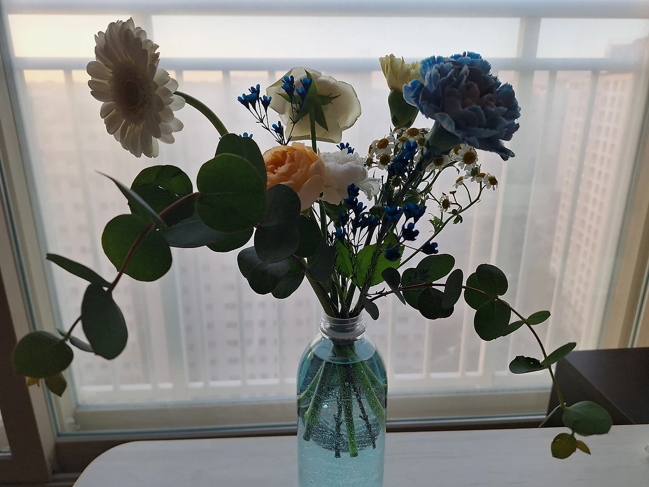 꽃들이 화병에 목을 축이고