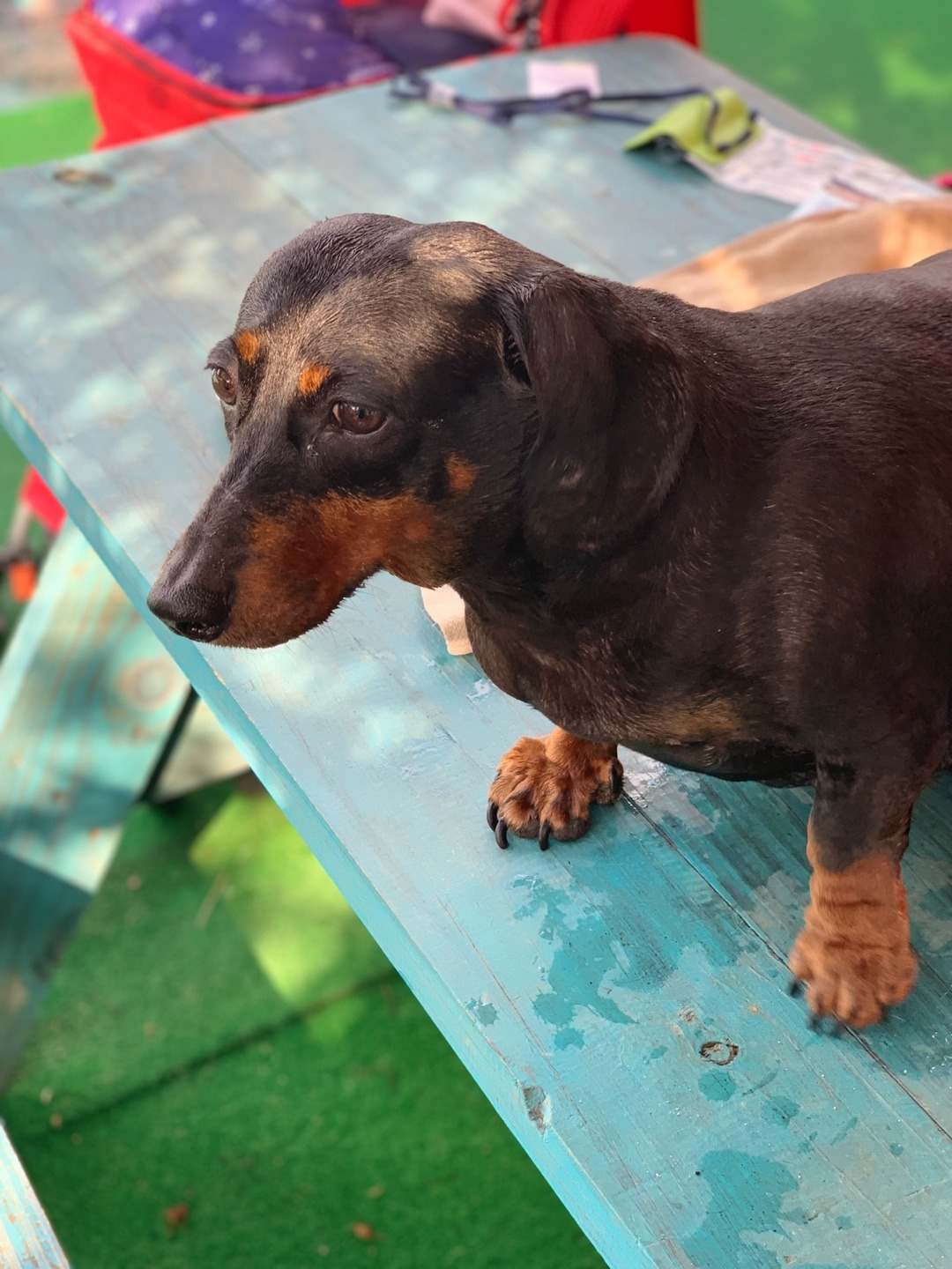 포와 같이 놀러 간 똘순이는 닥스훈트다. 남자 친구와 함께 사는 이 녀석도 나이가 9살이 되어간다. 세 번의 출산 경험이 있고, 다섯 살이 되던 해 암 판정을 받았다. 오래 살지 못할 거라는 의사의 말에 남자 친구는 똘순이가 먹고 싶어 하는 것들을 다 줬다고 했다. 사람이 먹는 음식도 주고, 고기도 주고. 죽기 전에 맘껏 먹어라! 그런 맘으로 줬다는데, 똘순이는 이제 9살이 되어간다. 오진이었나 보다. 아무튼 그 때문에 똘순이는 살이 많이 쪘고, 체력이 좋지 못하다. 물도 되게 싫어해서 같이 수영장에 가면 혼자 자리 차지하고 꾸벅꾸벅 졸며 누워있다. 귀여운 녀석이다.