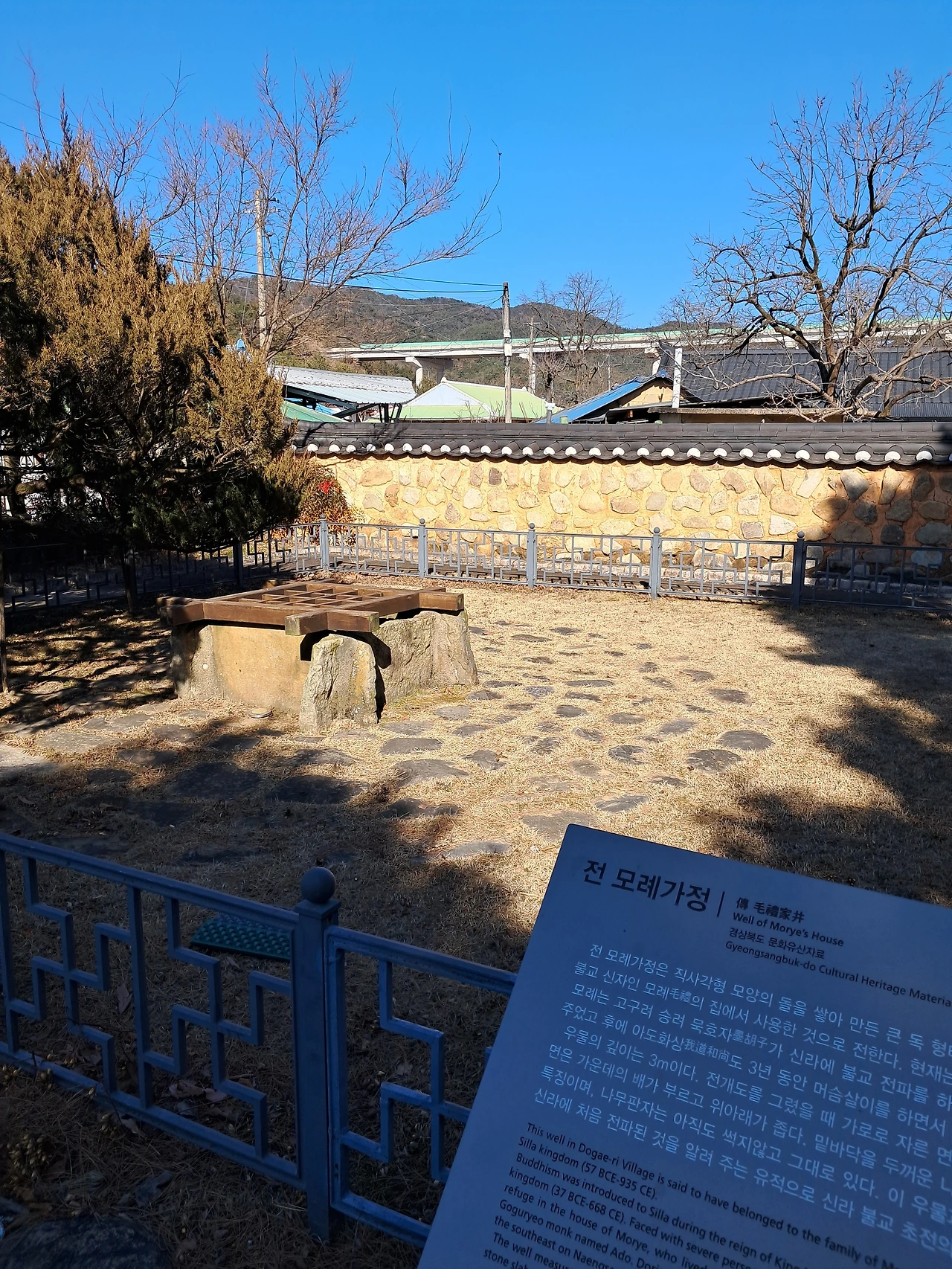 신라 최초의 불교신도인 모례(毛禮)의 집안에 있던 우물이라 전해진다. 모례는 모록(毛祿)이라고도 하며, 고구려의 승려 묵호자가 불교를 전파하기 위해 신라로 왔을 때, 집 안에 굴을 파서 3년 동안 묵호자를 숨겨주었다 한다. 또한 신라에 처음으로 불교를 전한 아도화상이 신라로 왔을 때에도, 자신의 집에 머물게 하였다는 이야기도 전해온다.