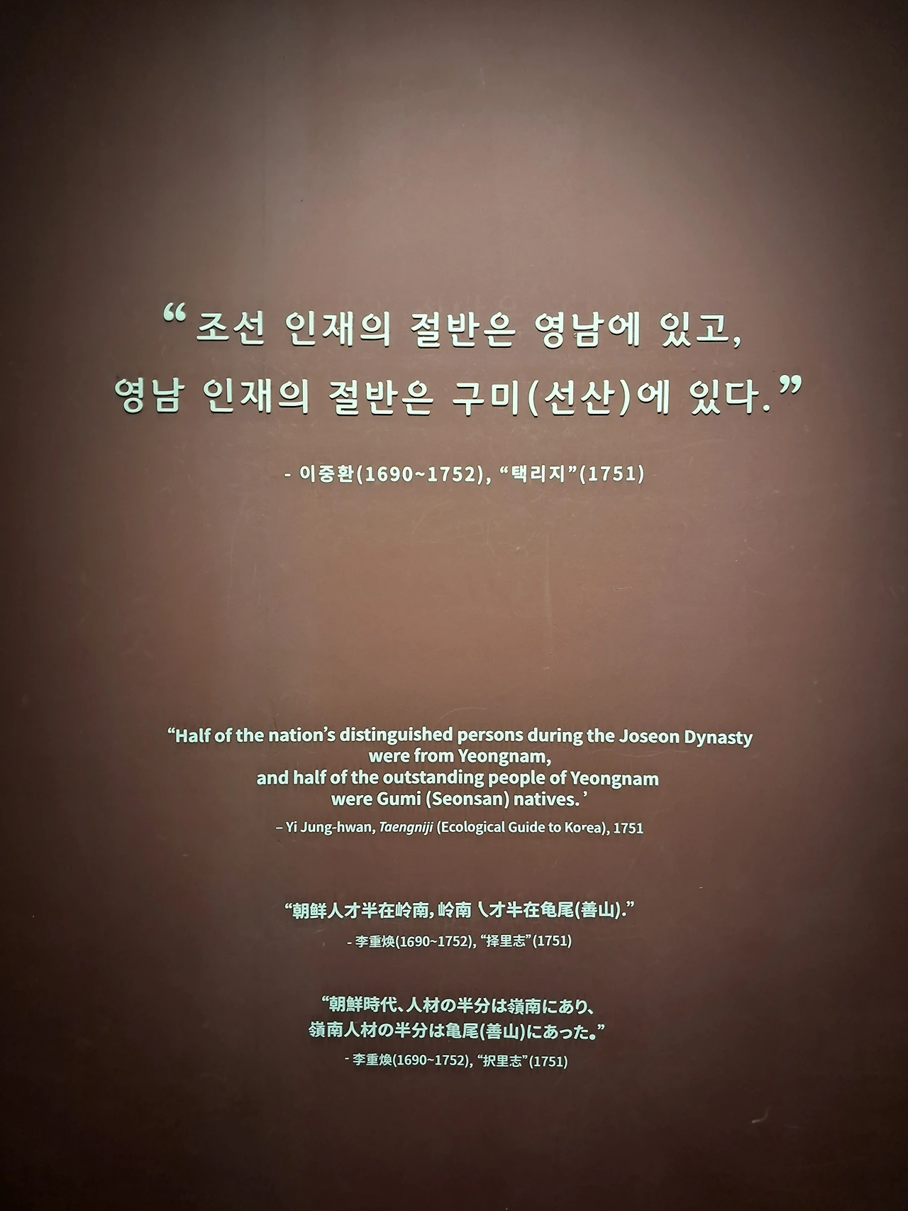 조선시대 정치이념인 성리학, 유교 문화를 널리 알리기 위해 조성된 곳으로 2020년에 개관하였다. 고려 말 이후 700여 년의 역사를 이어온 구미 성리학의 전통과 그 문화유산을 조사・연구하여 구미가 조선 성리학의 산실이었음을 널리 알리고자 한다.