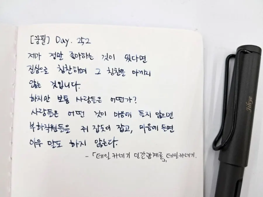 제가 정말 좋아하는 것이 있다면 진심으로 칭찬하며 그 칭찬을 아끼지 않는 것입니다. 하지만 보통 사람들은 어떤가? 사람들은 어떤 것이 마음에 들지 않으면 부하직원들을 쥐 잡듯이 잡고, 마음에 들면 아무 말도 하지 않는다. -<데일 카네기 인간관계론> 중에서