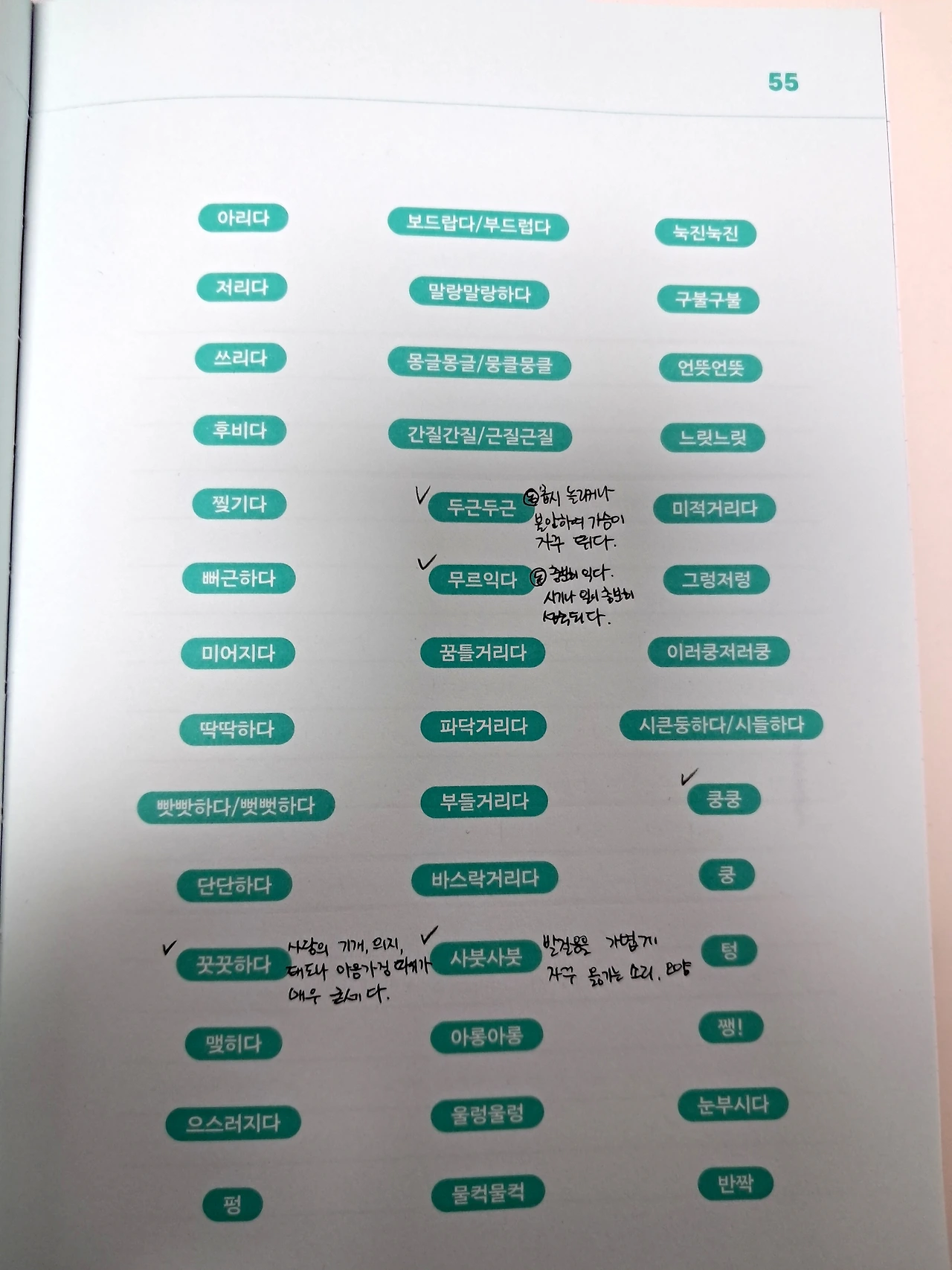 '사붓사붓'. 어감이 좋아서 찜한 어휘이다. 이 책을 통해 이 단어를 처음 접했다. '소리가 거의 나지 않을 정도로 발걸음을 가볍게 자꾸 옮기는 소리, 또는 그 모양'이라는 뜻을 지녔다.