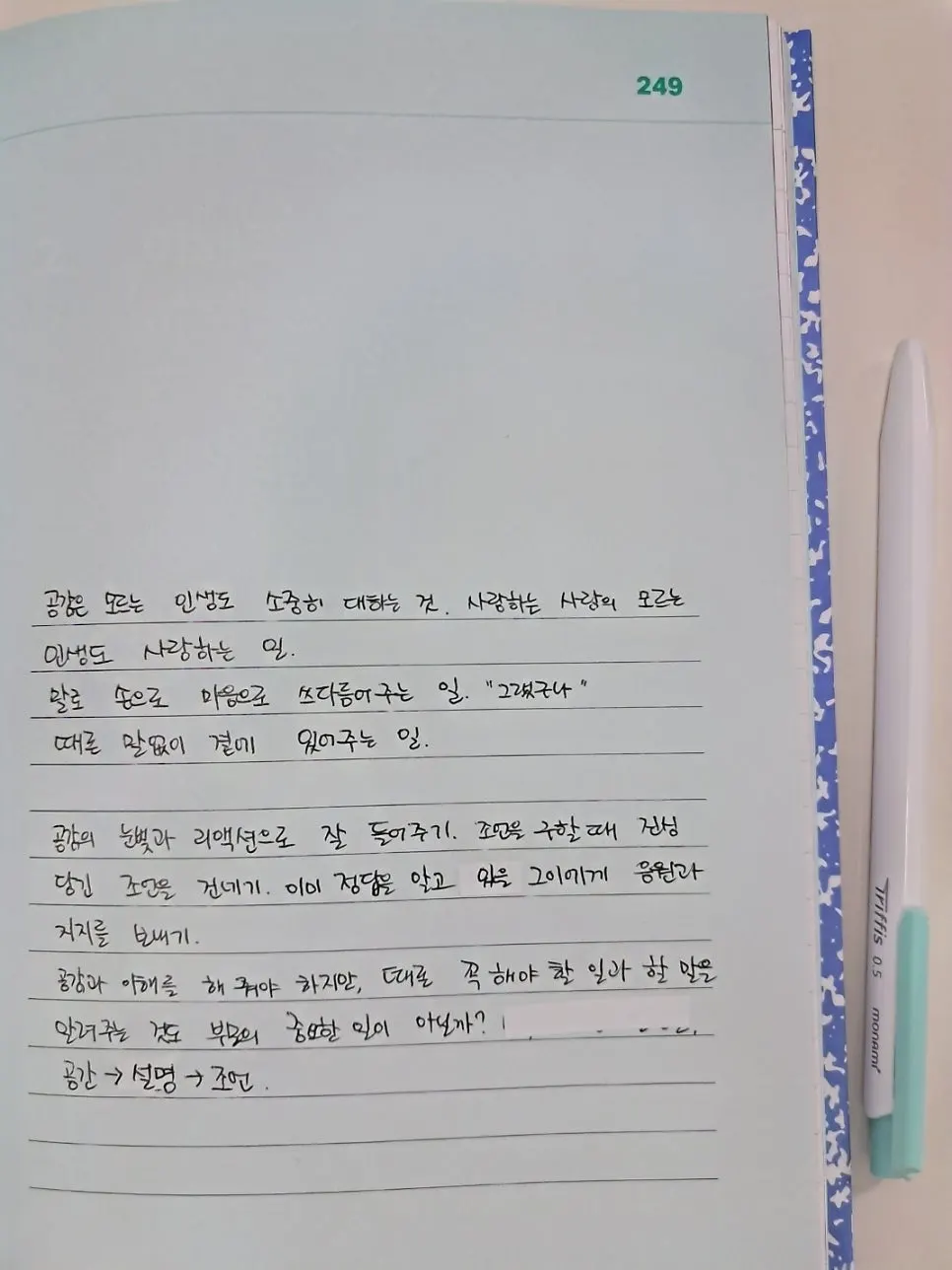 무한도전 속 이 말처럼, 나를 찾아온 누군가의 고민에 어쩌고저쩌고하기 전에 '그랬구나'라고 말하며 들어주기. 잠자코 들어주는 것도 능력인 것 같다. 그저 힘들어하는 사람과 같은 표정을 지으며, 그 이야기를 들어주는 것. 그 별것 아닌 위로가 진짜 공감이 아닐까? 정답을 알고 있을 상대에게 응원과 지지를 보내기. 혹여나 조언을 구한다면 진심 담긴 조언을 건네기.