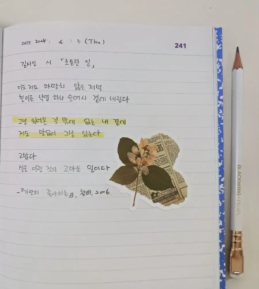 김사인 시 <조용한 일>