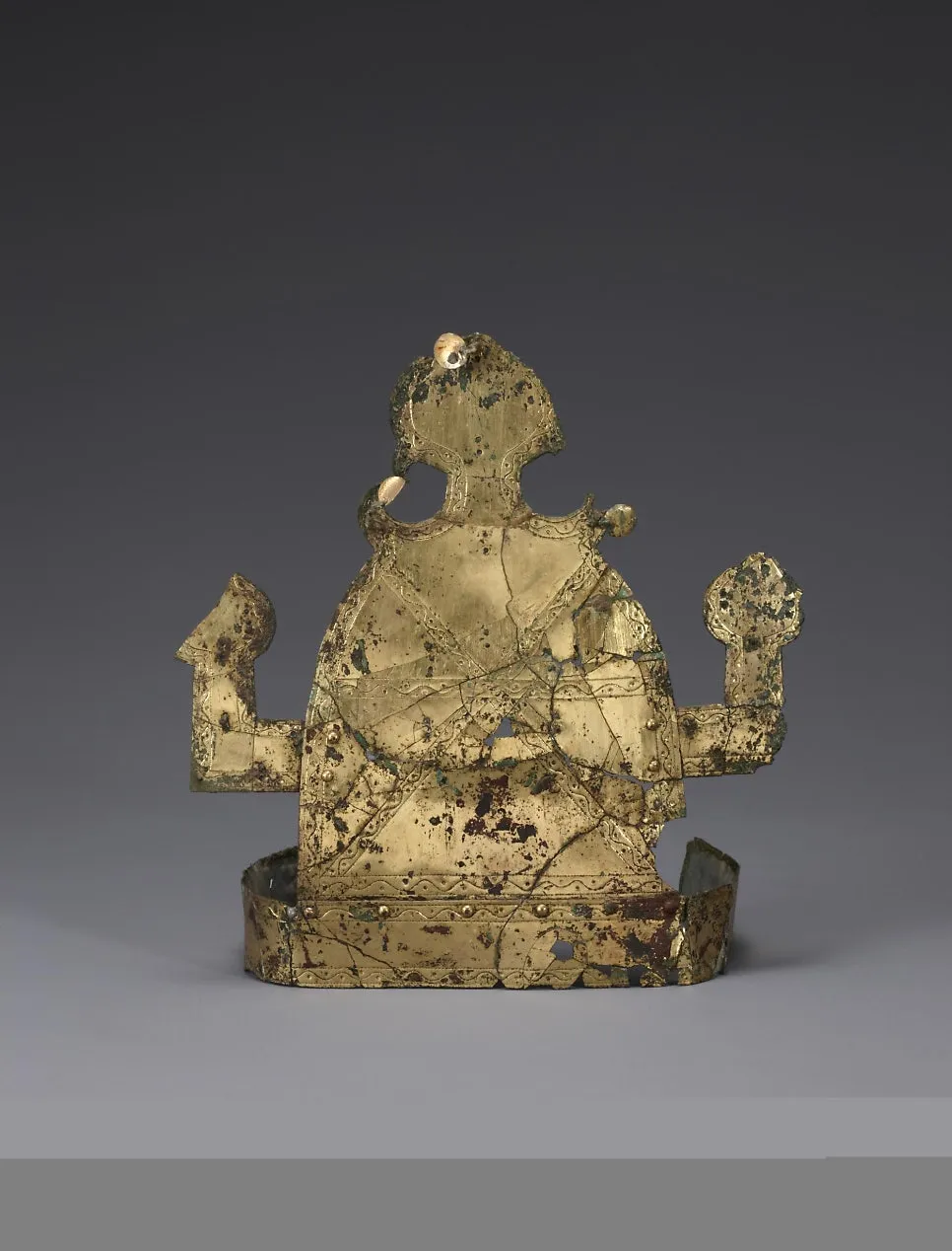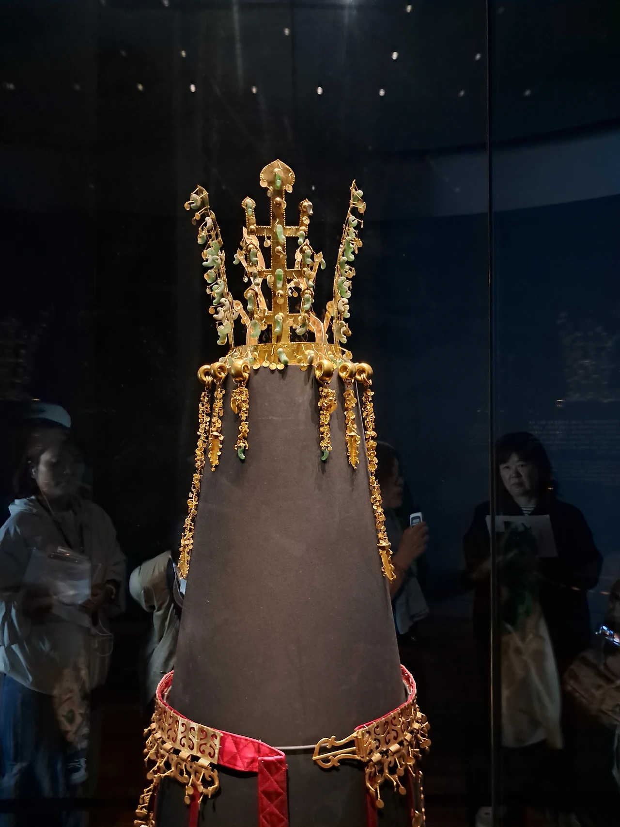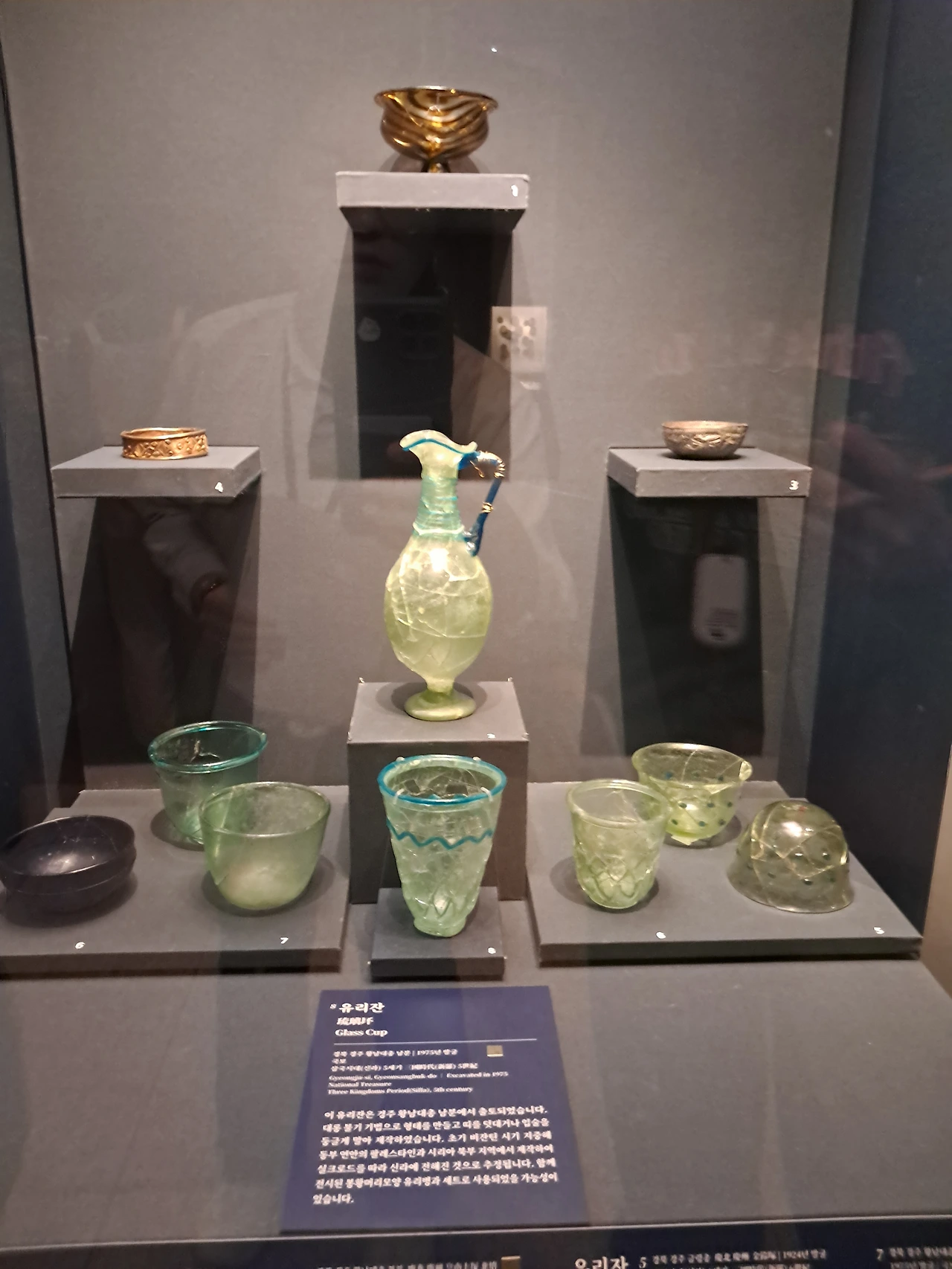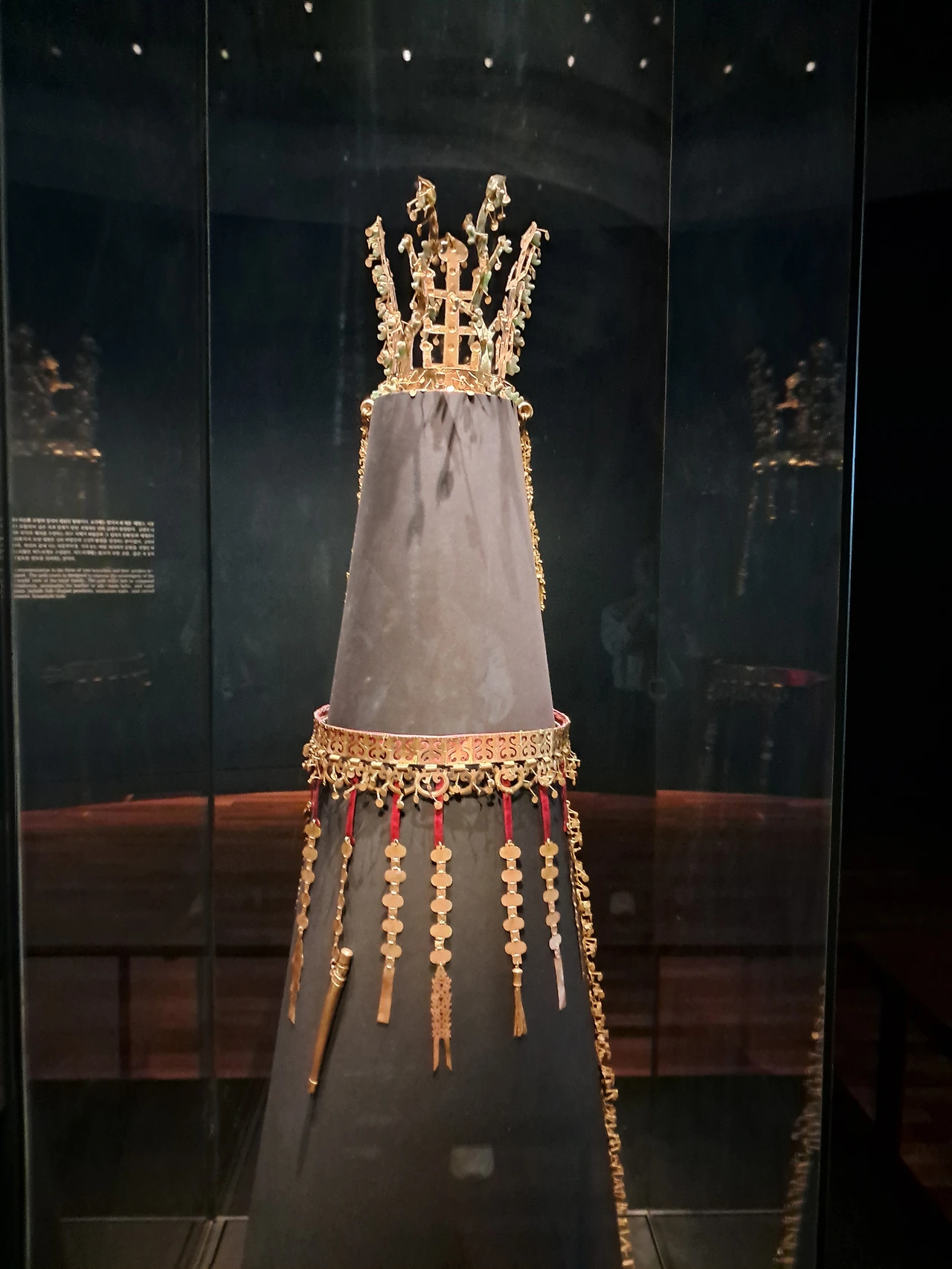 신라실에서는 현재 경주 대릉원에 있는 황남대총에서 출토된 금관을 비롯하여 지배층의 면모를 보여주는 화려한 황금 껴묻거리를 전시하고 있다. 신라 문화의 국제성을 볼 수 있는 유리잔 같은 다양한 외래 유물과 함께 대표적인 신라의 토기와 기와, 무기, 말갖춤도 볼 수 있다.