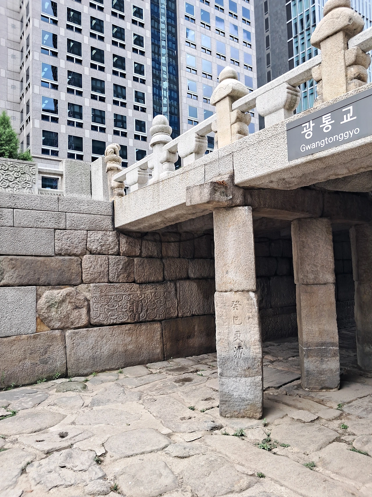 광통교는 육조거리-운종가-숭례문으로 이어지는 도성 안 중심 통로였으며, 주변에 시전이 위치하고 있어 도성에서 가장 많은 사람이 왕래하던 다리였다. 원래 이름은 '넓게 통하는 다리'라는 뜻의 대광통교였다. 광통교는 원래 흙으로 된 다리였는데 태종 때 큰비로 쓸려가 버리자 돌로 튼튼하게 만들었다. 그런데 이 다리의 재료가 된 돌은 태종의 새어머니인 신덕왕후의 능에 있던 장식용 돌이었다고 한다.
