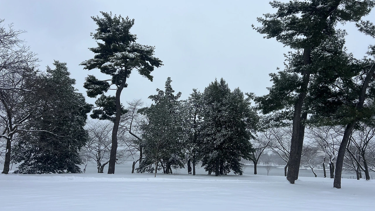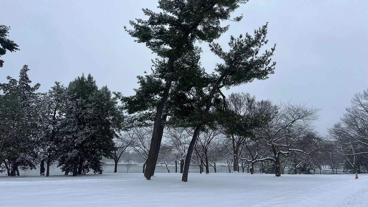 나무가 많은 공원 같은 길이 계속 이어졌고, 햇빛은 눈구름에 가려 애초에 보일 생각이 없었다. 옆의 물가(호수)는 살짝 얼어붙었고 주변은 조용하고, 눈 내리는 소리만 들렸다. 너무나도 조용해 약간 오싹하기는 했으나 설경만은 아름다웠다. 눈밭에 나무 밑동이 파묻히고, 가지 위로 눈이 얹힌 모습은 예술적이었다. 미국에서 보는 진짜 설경. 나무도 한국에서 흔히 보던 소나무와는 달랐다.