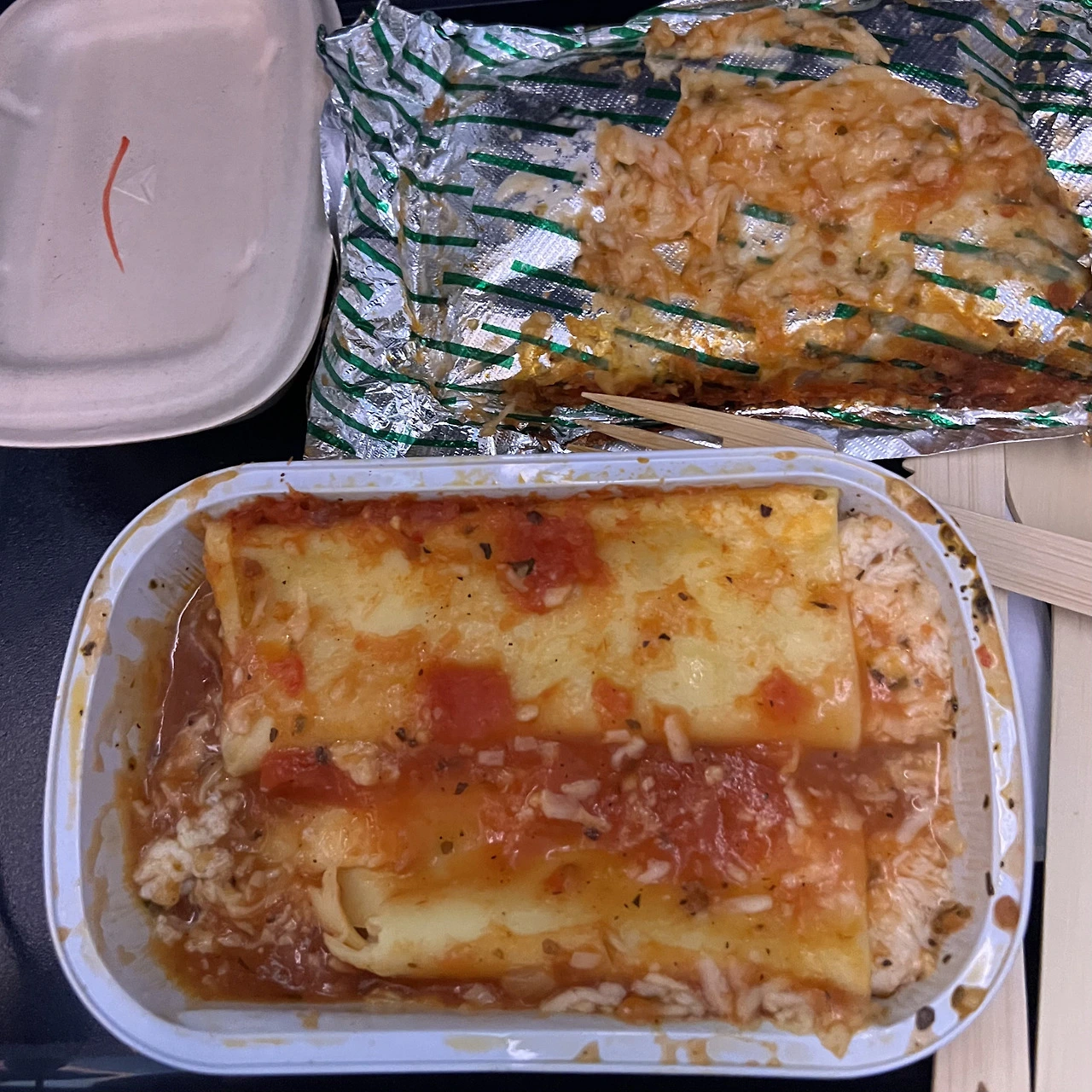 이륙하자마자 기내식이 나왔다. 토마토 브루스케타 소스가 들어간 모차렐라 마니코티. 나는 대충 먹고, 에어 목베개에 바람을 슝슝 넣어 목에 걸었다. 아이패드에 저장해 둔 드라마와 예능, 영화들을 재생하다가 어느 순간 잠이 들었다. 체구가 작은 편이라 이코노미 좌석이 그리 불편하지는 않았다. 무엇보다 미국 항공기라 그런지, 좌석 간격이 한국보다 약간 넓게 느껴졌다.