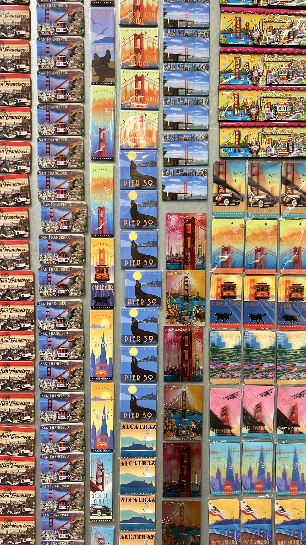 동생은 금문교가 그려진 키링을 하나 더 골랐고, 나는 계속 눈길이 가는 ‘차량 번호판 모양’의 기념품을 결국 집어 들었다. 원래 이런 걸 좋아하는 편이 아닌데, 샌프란시스코의 상징들이 한 장에 모여 있는 그 판이 이상하게도 끌렸다.