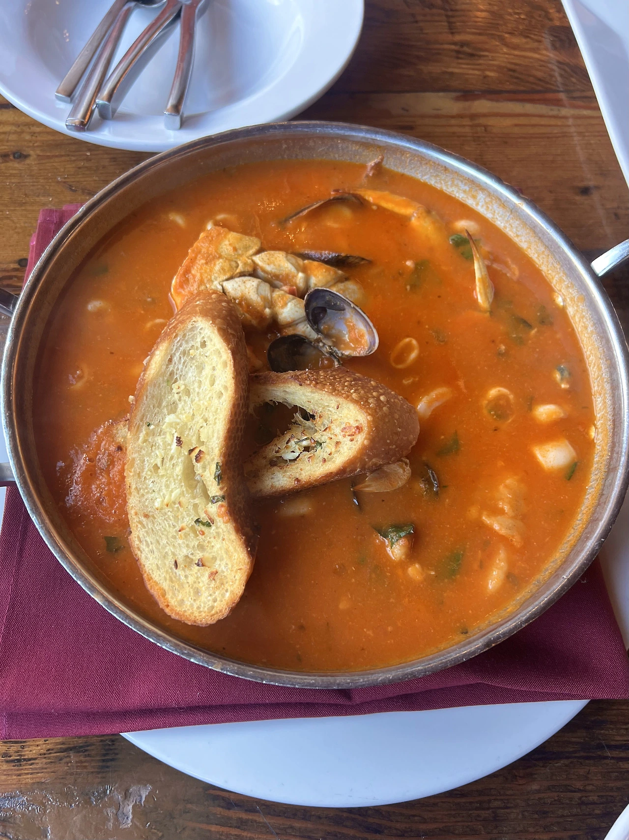 어느새 오후 4시. 저녁 시간이 다가왔다. 바다를 보고 바다사자까지 봤는데 해산물을 안 먹는 건 반칙 같았다. 우리는 체인점도 고민했지만, 결국 이 도시에서 먹는 의미를 택했다. Cioppino’s. 나는 시원한 에일 한 잔을 시켰다. 동생은 콜라로 짠을 했다.