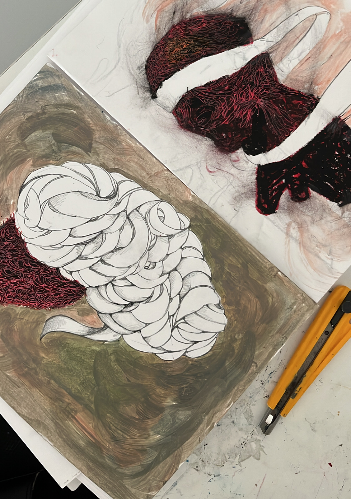의미 없다고 여겨질 수 있는 모든 것들이 구체적인 형상이나 사실적인 묘사가 되어 주를 이루기보다 서로 뒤엉켜 회화로 연결된다. 이는 도시화된 현대 사회에서 살고 있으며 겪고 보이는 버려지는 것들, 소외되는 것들, 경험한 것들 일 수 있다.