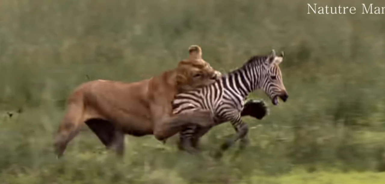 사자가 얼룩말이나 루우 소를 사냥하는