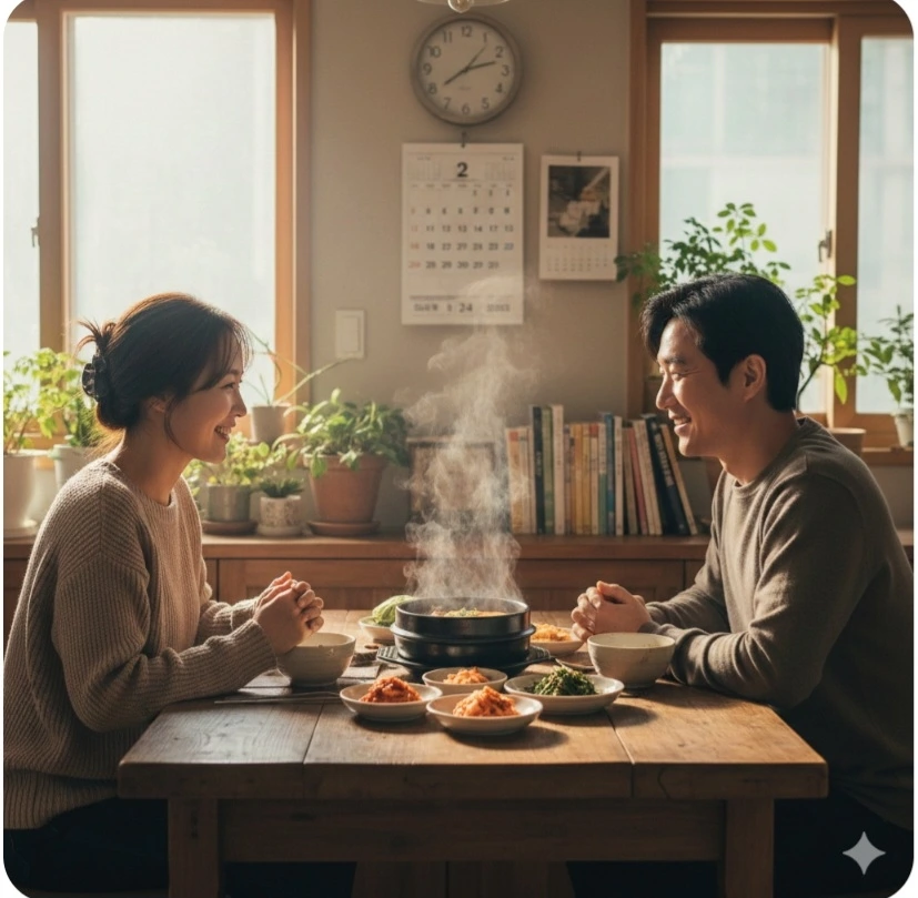 "아이고 그래도 우리집이 좋다. 저녁을 해놓고 기다리는 서방님이 계시니."