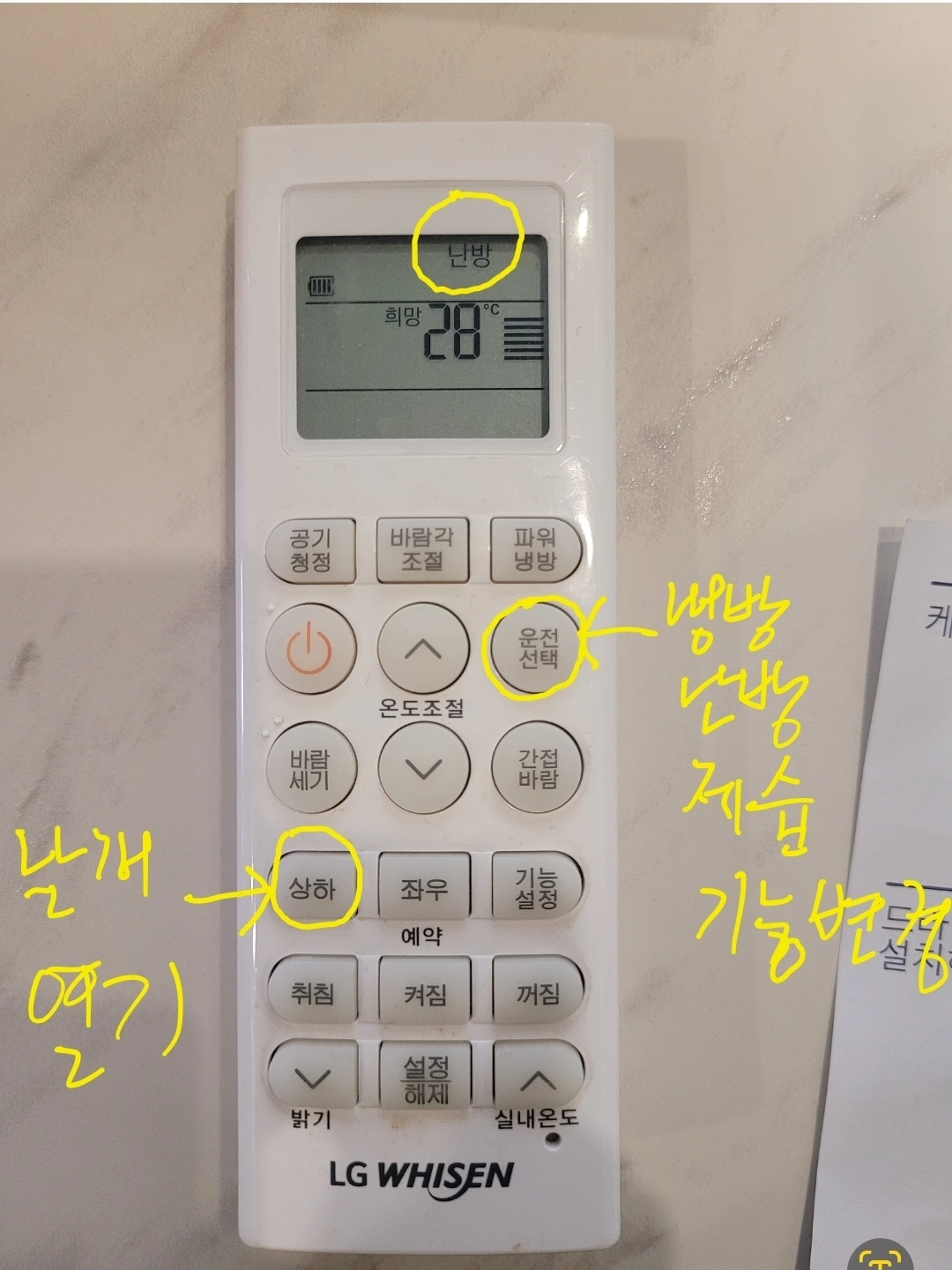 ㅡ온방 겸용 에어컨 사용법은 아들이 찾아서 장치(별첨 사진)