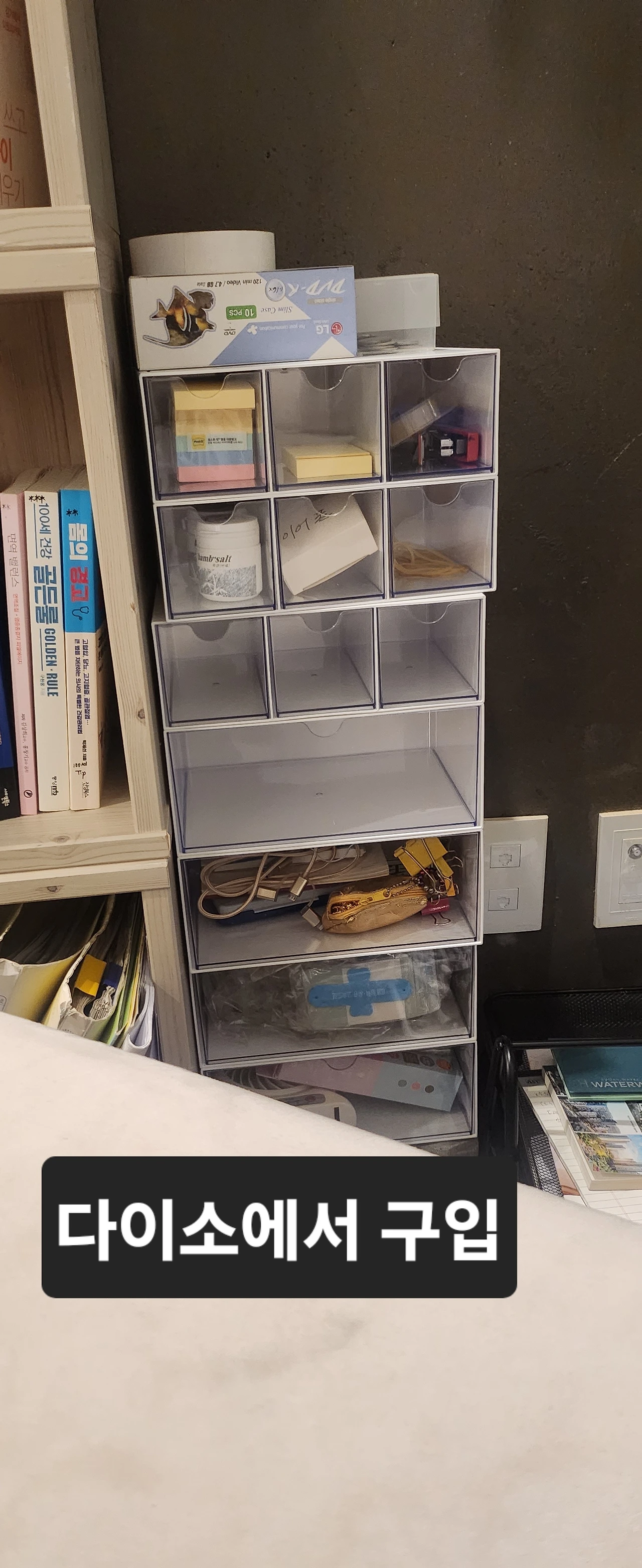 ㅡ책꽂이 옆의 문구 정리함은 다이소에서 구입