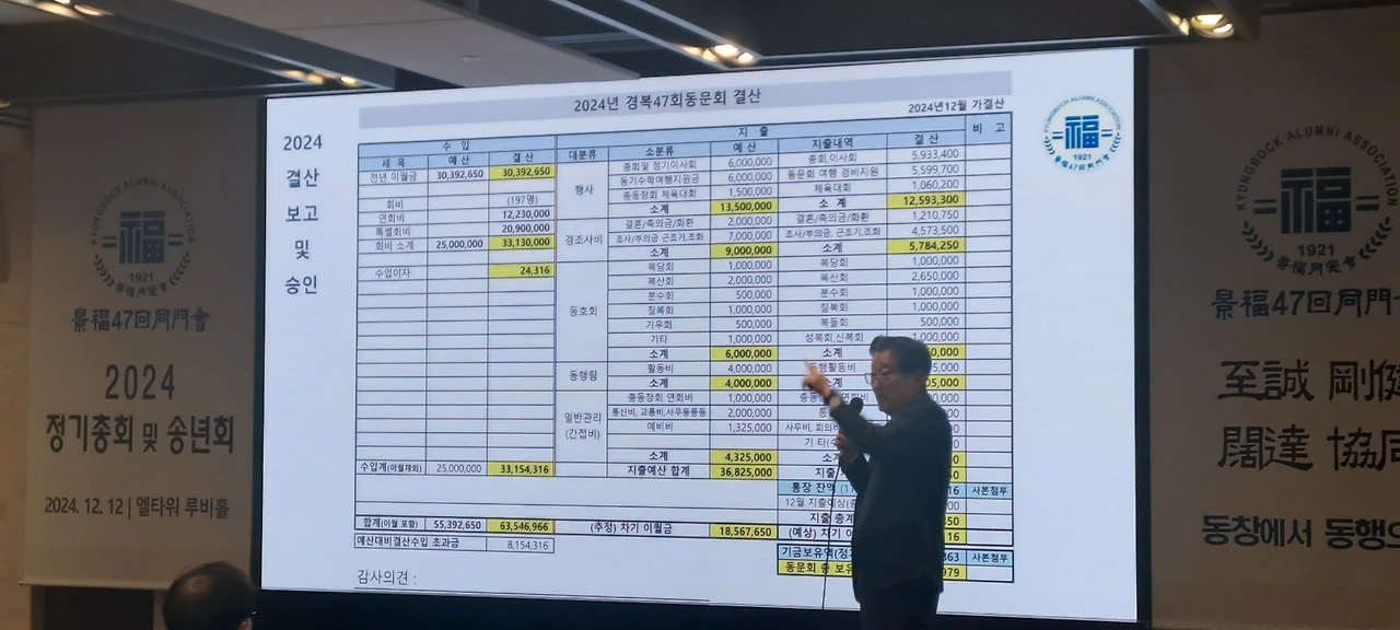 ㅡ결산 승인, 예산(안) 의결, 회칙 개정 등 통상적인 절차 이행