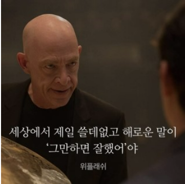 보기 두 개를 놓고 갈등했던 문제들은 내가 찍은 게 답인 경우가 많아 운이 좋게도 나는 모의고사보다 좋은 점수를 받아내었고 담임쌤의 콧대를 납작하게 만들겠다는 목적을 달성하였다. 때로는 따뜻한 격려나 응원의 메시지보다 "위플래쉬"에 나오는 플레쳐 교수처럼 미친 듯 닦달을 하는 것이 오히려 좋은 결과를 내게 하는 건지 알쏭달쏭한 생각이 든다.