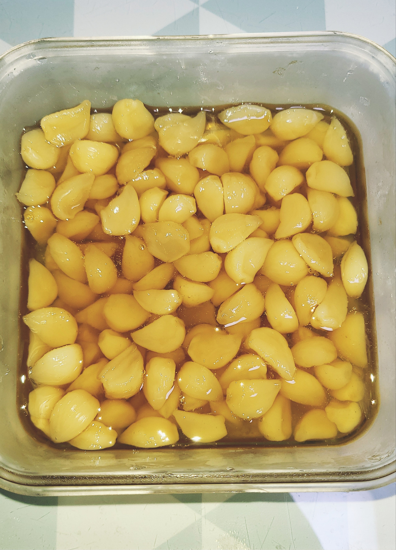 뭔가 마늘장아찌 비주얼이지만 마늘꿀절임이다.