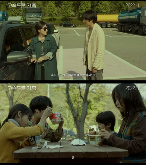 빌려 준다는 건 갚음을 전제로 하는데 정일우는 휴게소 방문객에게 마지막 자존심을 지키기 위해 매번 "그냥" 돈을 달라고 하지 않고 "빌려" 달라면서 끝내 계좌까지 받아낸다. 지금 생각해 보니 자존심이라기보단 돈을 조금이라도 더 쉽게 받아내기 위한 전략으로 보이기도 보인다. 물론 다시 갚지는 않는다. 한 번 만난 고속도로 방문객과 다시 또 만날 확률은 오만팔천분의 일쯤 될 테니까. 그렇게 2만 원 받아내기에 성공하면 종일 굶었던 네 식구는 컵라면으로 끼니를 때운다. 인당 하나씩 돌아가는 컵라면은 감지덕지다. 그마저도 여유가 없을 때는 휴게소 식당에서 한 사람분의 음식을 겨우 시키고 넷이서 나눠 먹는다.