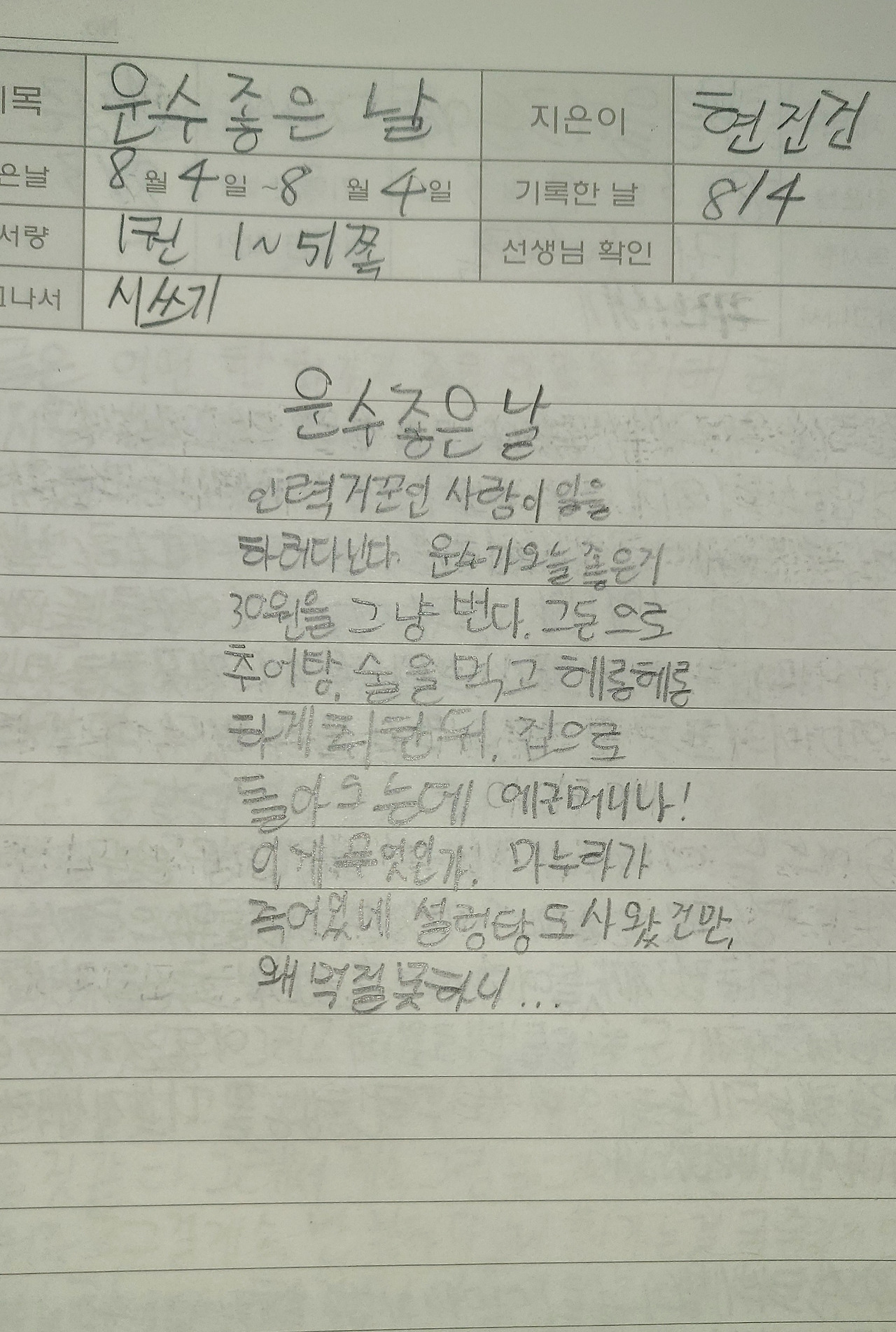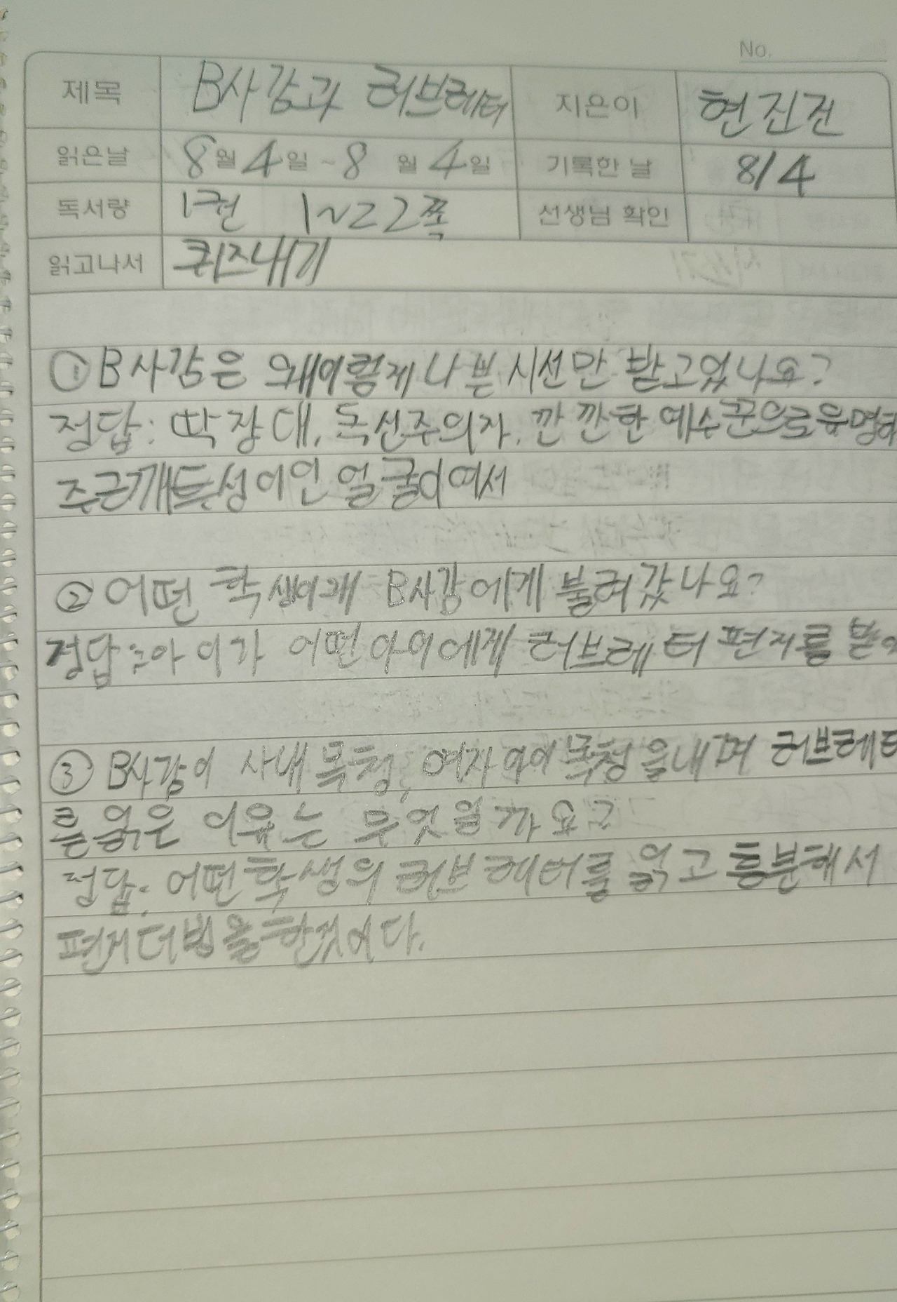 "야! 너 하루에 독서록 2개 했어? 주 2회 독서록인데 왜 하루에 2개를 해?!"