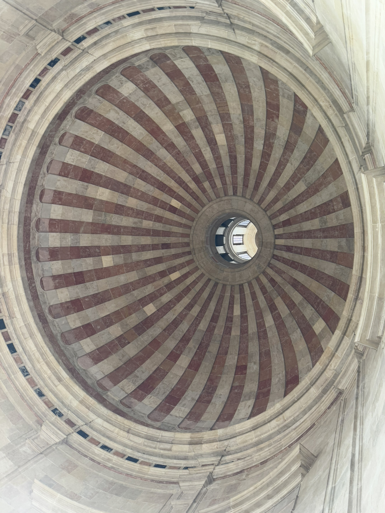 사실 판테온은 블로그에서 옥상 전망이 좋다는 리뷰를 봐서 방문한 것이었다. 하지만 옥상을 가는 도중 뜻 밖에 내부 인테리어에 반했다. 건물은 웅장했다. 둥근 천장 돔과 바닥의 둥근 디자인의 상하 대칭, 건물 내부의 좌우 대칭이 주는 안정감이 좋았다. 사람도 별로 없어서 사진 찍기 좋았다. 다만 옥상 전망대는 기대보다는 별로였다. 물론 날씨가 흐려서 그랬을지도 모른다. 하지만 날씨 탓을 할지라도 강원도나 남해바다에서 봤던 바닷가 뷰보다 멋지다는 생각은 들지 않았다. 혹시 내가 포르투갈 전망에 대한 환상을 너무 많이 안고 온 것일까?