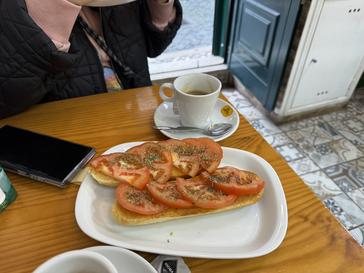 도둑시장 올라가는 길에 포르투갈에서의 첫 식사를 했다. 골목길에서 우연히 발견한 빵집에 들어갔다. 빵은 심심하니 좋았지만 커피는 출근을 생각나게 하는 맛이었다. 세상에서 가장 작은 카페, 카누 맛이었다.
