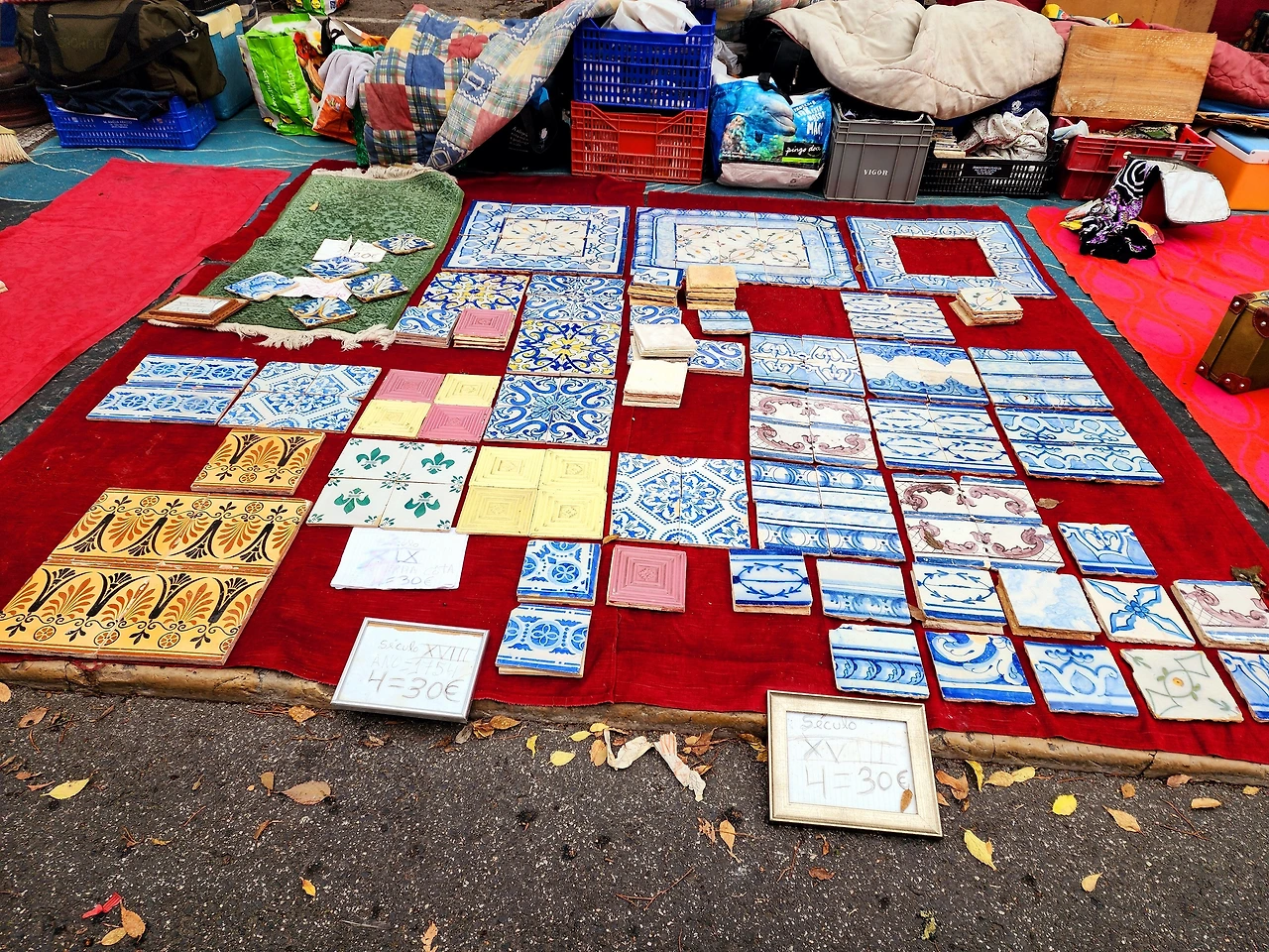 포르투갈은 아줄레주가 그려진 타일이 유명하다. 유럽치고 날씨가 습해서 건물 외벽에 타일을 붙이기 때문이라고 한다. 타일은 공장에서 대량 생산된 타일이 아닌, 각자의 개성을 담은 그림과 무늬가 있는 것을 붙인다. 그래서 집마다 외벽의 색과 무늬가 다르다. 여기 도둑시장에서는 그렇게 실제 집에 붙어있던 타일을 판다. 집에서 떼왔는지, 재건축할 때 사 왔는지는 모를 노릇이다. 실제 쓰던 제품이라 모서리가 깨지고 색이 바랬다. 기념품샵이나 타일박물관에 있는 타일과는 다른 날것 그대로의 바이브다. 하나 사고 싶었지만 아내의 만류에 사진 못했다.