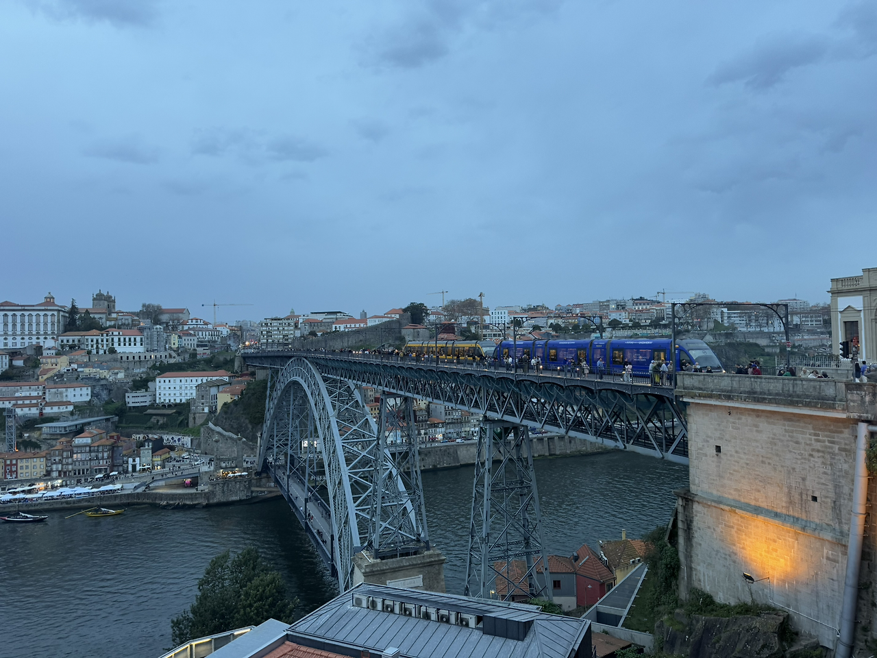 기차를 조금 타다 보면 창 밖으로 비현실적인 풍경이 펼쳐진다. 나와 아내는 "우와.."라는 감탄사를 동시에 뱉었다. 창 밖으로는 아찔하게 깊은 계곡 사이로 도루강이 흐른다. 그리고 그 위로 포르투의 랜드마크인 동루이스다리를 비롯해 Ponte Infante Dom Henrique 다리가 보인다. 얇고 높고 긴 콘크리트 다리로, 전혀 예상치 못했던 아름다운 교량이다. 다리 건너편 절벽에는 포르투 특유의 작은 건물이 아기자기 몰려있다. 절벽 아래쪽으로는 개미같이 작은 사람들이 분주하게 움직이고 있다. 짧은 순간에 포르투의 얼굴을 압축적으로 볼 수 있었다.