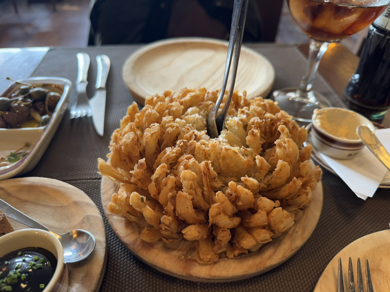 나는 원래 양파튀김을 좋아해서, 메뉴에 보이면 거의 빠짐없이 주문하는 편이다. 지금까지 내가 먹어본 양파튀김 중 가장 맛있었던 건, 라스베이거스의 고든 램지 버거에서 먹었던 그것이었다. 이번 양파튀김은 그 기억을 위협할 만큼 훌륭했다.(아직까지는 고든 램지 버거의 양파튀김이 내게는 최고다.)