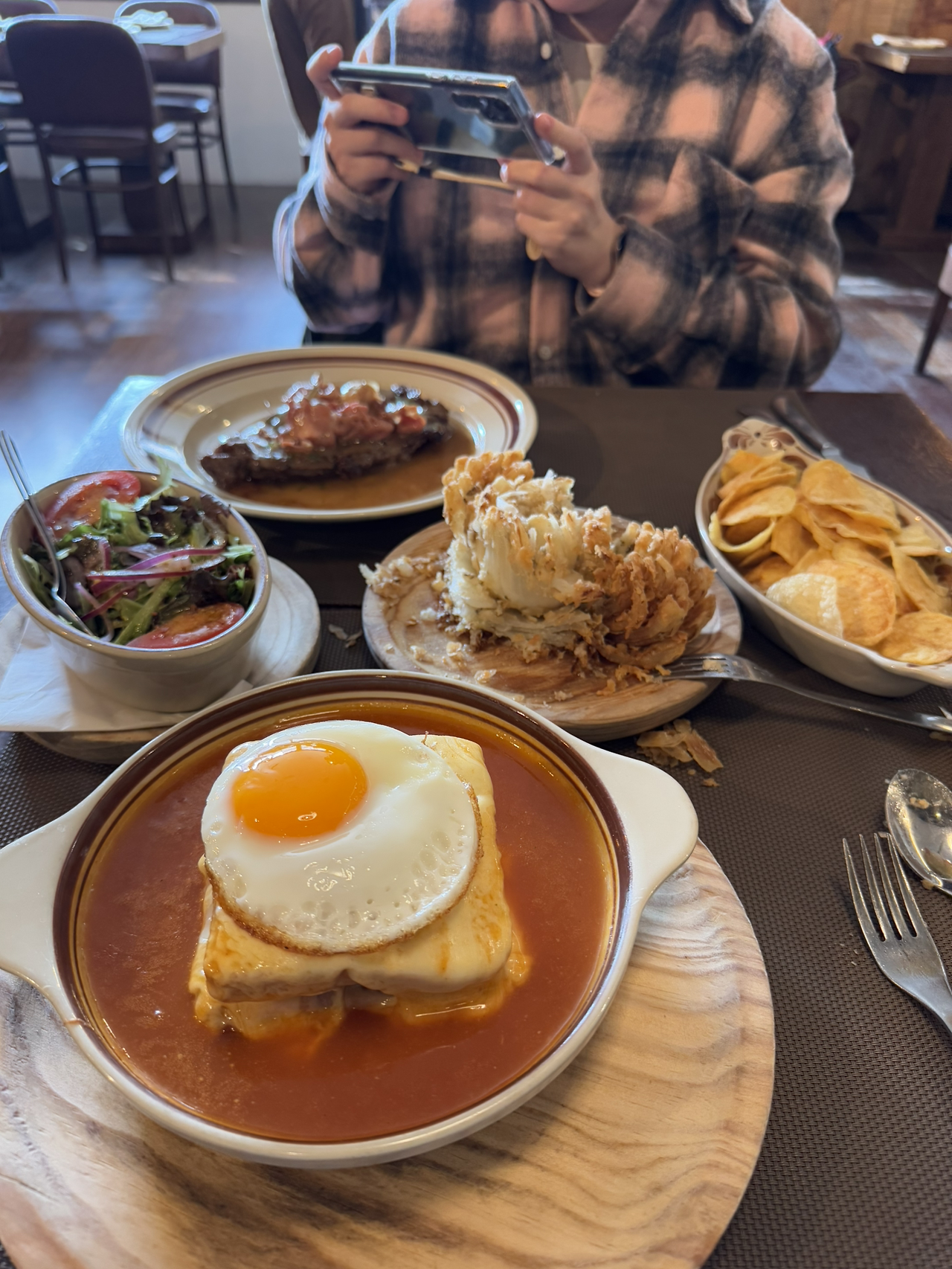메인으로 먹은 프란세지냐와 포르투갈식 스테이크, 디저트로 먹은 초콜렛 아이스크림.